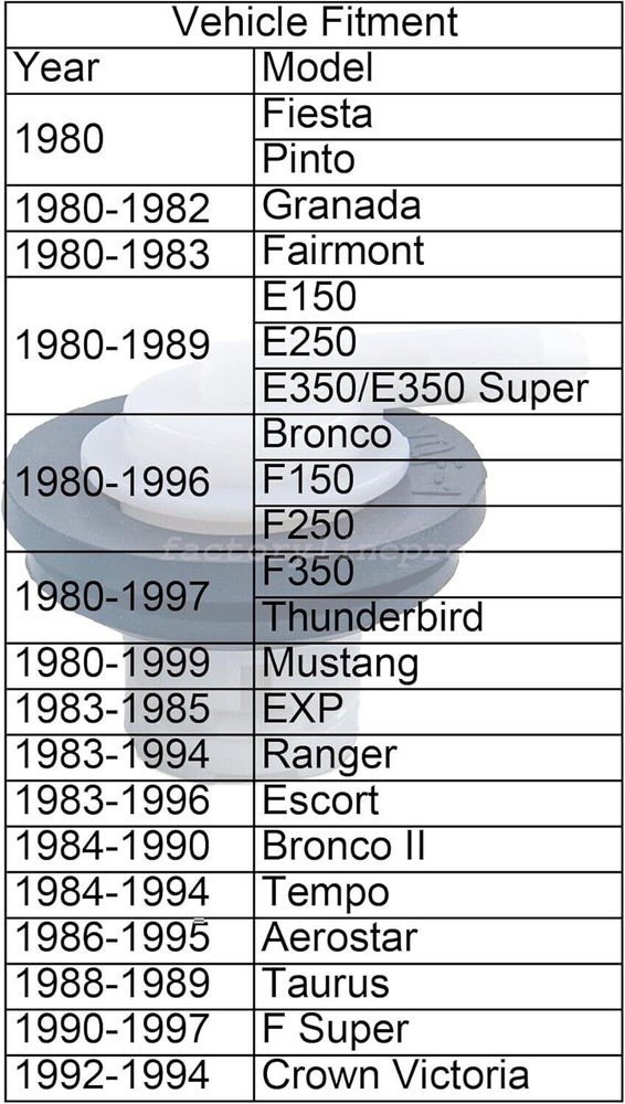 About this item: 1 Piece Fuel Tank Vent with Grommet Seal for F150 F250 F350 Ranger Older Models. Fuel tank vents manage the pressure in the fuel tank to prevent overpressure by allowing fuel tank vapour to escape when the tank is filled or under certain conditions. Fuel tank vents are an important part of the proper functioning of the fuel system on various models. This particular component is designed to regulate the flow of vapour from the fuel tank, preventing pressure build-up in the tank and ensuring that the fuel system operates safely and efficiently. Fuel tank vent valves are available for a range of models including, but not limited to, 1980-1996 F150 F250, 1980-1997 F350.Replacement Part Number F6TZ-9B076-AA F6TZ9B076AA E1FZ-9B076-B F6TZ-9B076-AA E1FZ9B076B F6TZ9B076AA TIP: It is easier to install the grommet first, then the air vent. Some models require 2. On Feb 11, 2025 at 18:09:51 PST, seller added the following information: