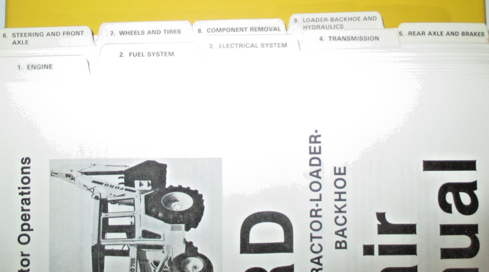 Original! Ford Dealers Service / Repair Manual for the Model 755 Tractor Loader Backhoe. It would be hard to find a nicer original than this one! It's in very good used condition. Dated/Issued/Copyright: UNDATED Manual number SE-3905 It has around 650? pages. Inventory no. NH-8388 This manual has detailed repair information with lots of pictures/drawings. The same genuine manual your dealer used to repair these machines. **(see pictures)** **NOTE: MEDIA SHIPPING SOMETIMES MAY TAKE UP TO TWO WEEKS. IF YOU NEED IT FASTER THAN THAT OTHER SHIPPING OPTIONS ARE AVAILABLE UNDER THE "SHIPPING and PAYMENTS" TAB.** WE SHIP WORLD WIDE! Any package shipped to a location outside the USA, will pay higher shipping . International Buyers – Please Note : Import duties, taxes, and charges are not included in the item price or shipping cost. These charges are the buyer's responsibility. Please check with your country's customs office to determine what these additional costs will be prior to bidding or buying. If you are interested in Tractors & Farm or Construction Equipment, please check out my store & other auctions! THANKS FOR LOOKING!