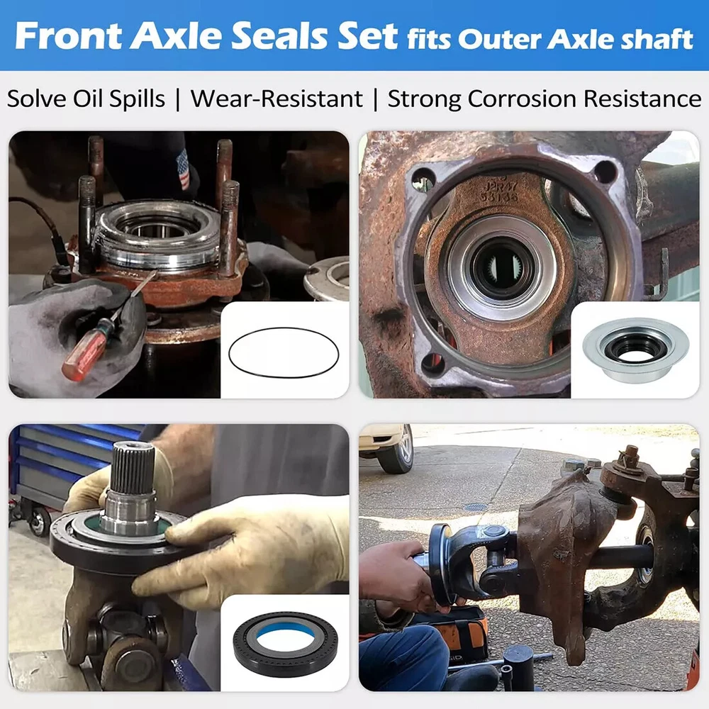 For Ford Super Duty F250 F350 Dana 60 Front Outer Axle Vaccum Inner Knuckle Seal Fitment: The front axle seal kit is compatible with 2005 2006 2007 2008 2009 2010 2011 2012 2013 2014 Ford Super Duty F250 F350 F450 F550 dual or single rear wheel 4X4 trucks with front dana 60 axles Features: 1) The tube seal kit is used for the outer axle shaft seal to prevent dirt from entering and replace the old and worn seals. Rebuild the front axle for Ford Super Duty F250 F350 F450 F550 2) 2 inner knuckle oil seals that fit on the outer axle shaft, 2 outer tube dust seals that fit on axle housing tube end, 2 vacuum seal O-rings that are for the wheel hub bearing assy.(total 6 pieces). Replace for part # 2017426, 2014835, 54983 3) The front axle knuckle seal kit is made of steel and rubber, treated with high-temperature resistance and anti-corrosion, sturdy and durable 4) This kit is used for the Front Axle to prevent lubricant leakage or dirt from entering and offer your rebuild or maintenance job a successful end paired with the expected performance. Best replacements for your worn or damaged seals Package including: qty 2 Inner Knuckle Seals (Part # 2017426) qty 2 Outer Tube Dust seals (Part # 2014835) qty 2 O-Ring (Part # 54983 )