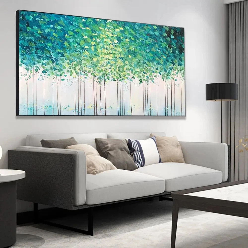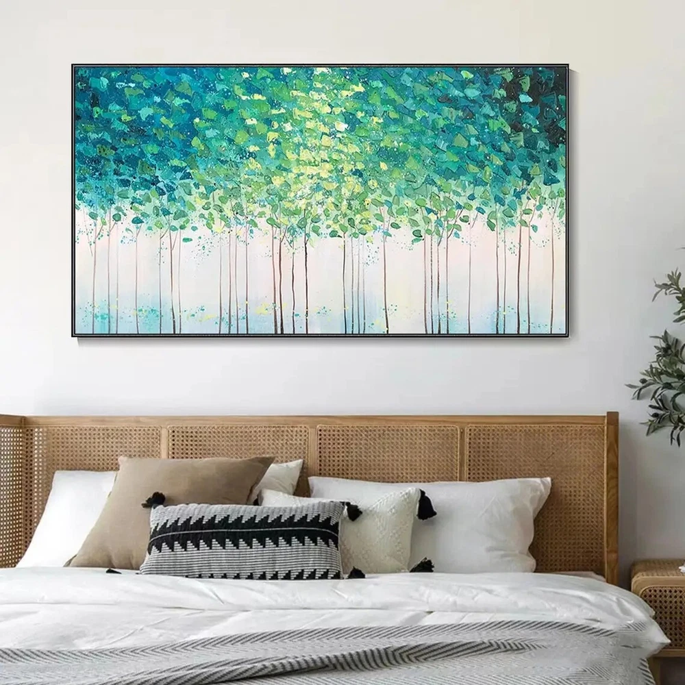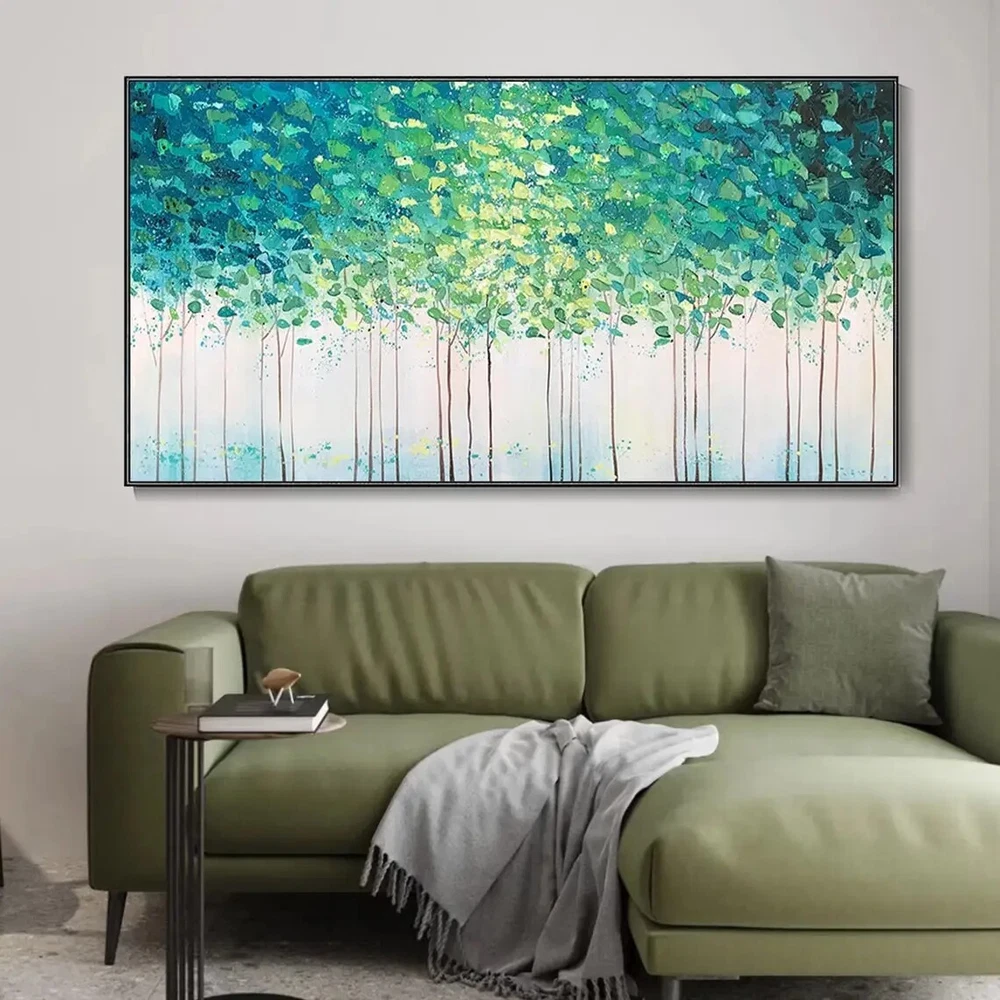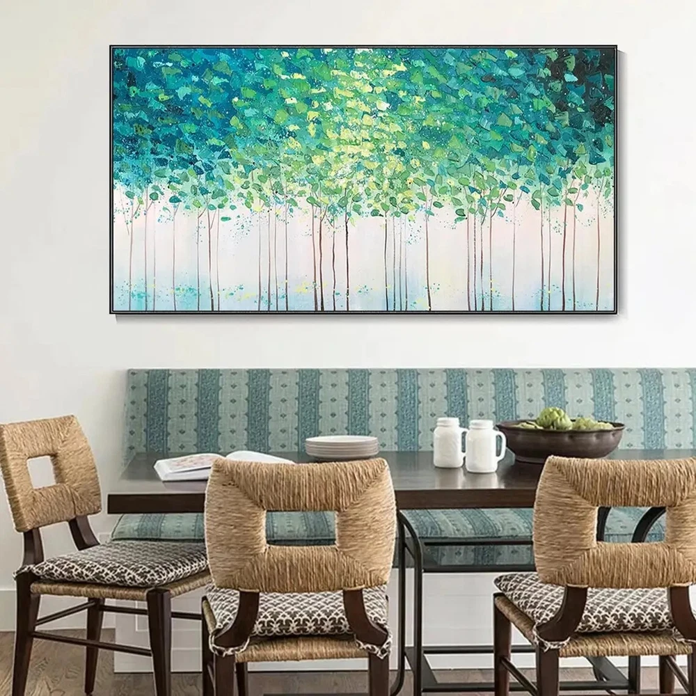 Forest Landscape Oil Painting Hand-Painted Green Tree Leaf Textured Mural