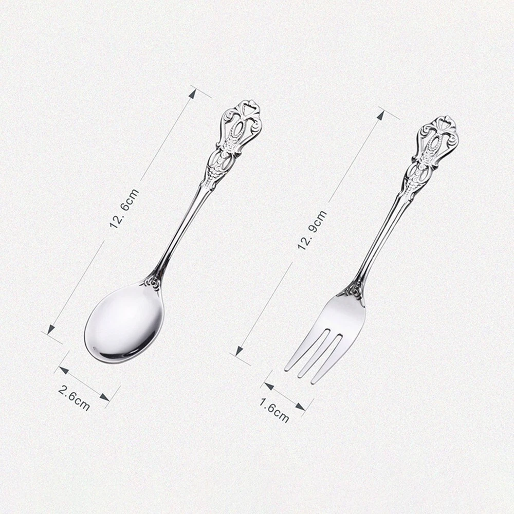 Product Description Features: * brand new and high quality * Made of high-quality materials, *These spoons are super fun. Drink a cup of coffee or tea. *Relief hollow craft *The texture is fine and retro and has charm *Can be used for desserts, coffee, souvenirs, set up photos, multi-color options *Material: Stainless steel *Optional Color: silver, gold *Size: about 12.6CM,12.9CM Package list: 1*spoon 1*fork Payment Payment must be completed within 5 days. If you have any problems about payment, please contact us via ebay message. Delivery details We only ship to confirmed ebay Order addresses. Please comfirm that your Order address is in line with your shipping address. Please kindly note that the c ombined shipping is not provided because the shipping fee is calculated by weight. Also, the each additional item means exactly the the same color and size. It takes about 7 -15 working days to US; about 10-30 working days to other countries. Transit time may be a little delayed because of the bad weather and customs inspection . If you do not receive your item within 30 working days since payment finished, please contact us immediately for further assistance. Contact us We strive for 100% customer satisfaction! Positive Feedback is very important to us. If you have any questions, p lease feel free to contact us via "Ask seller a question" . We will reply your email within 24 working hours.