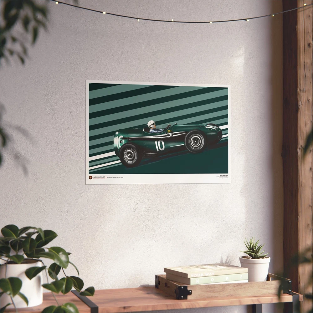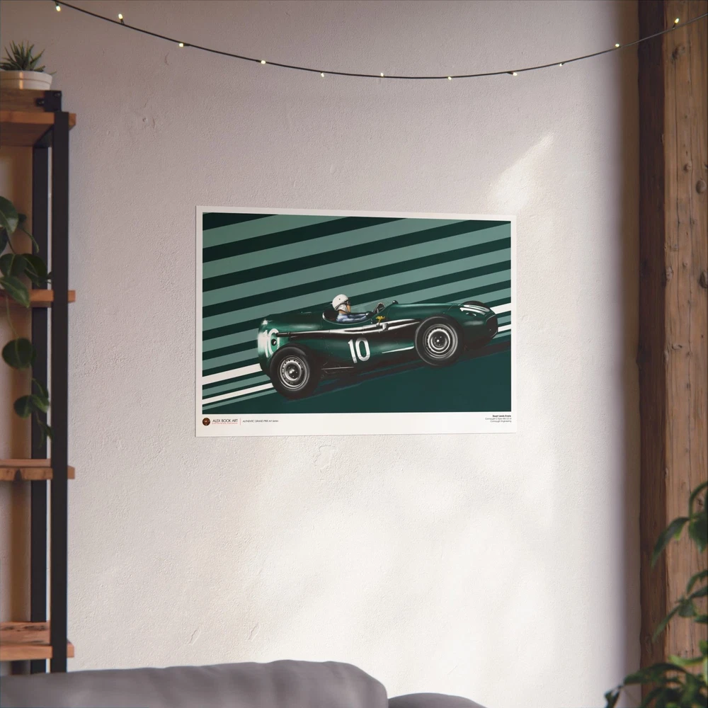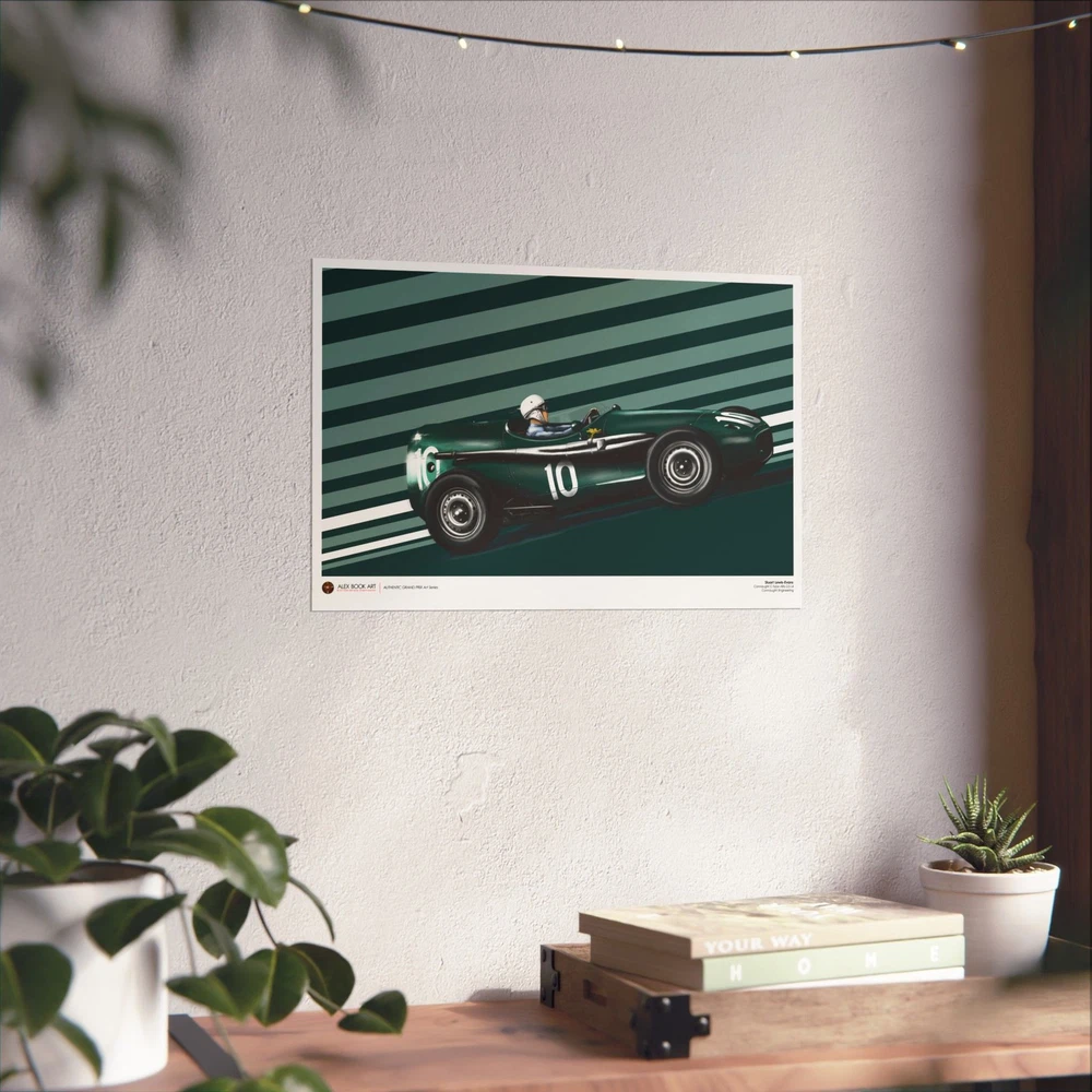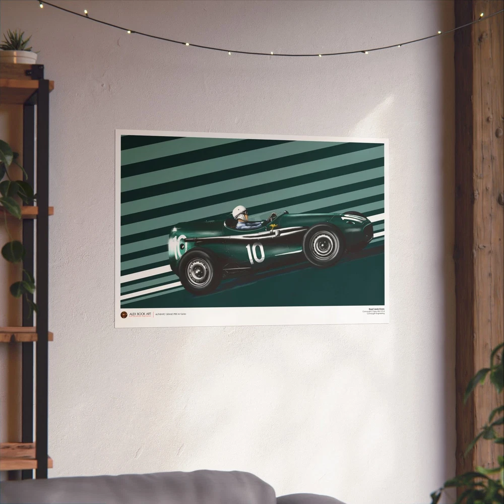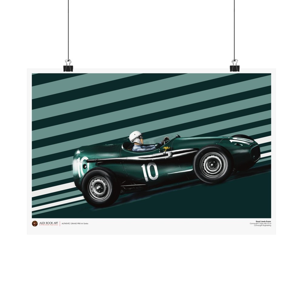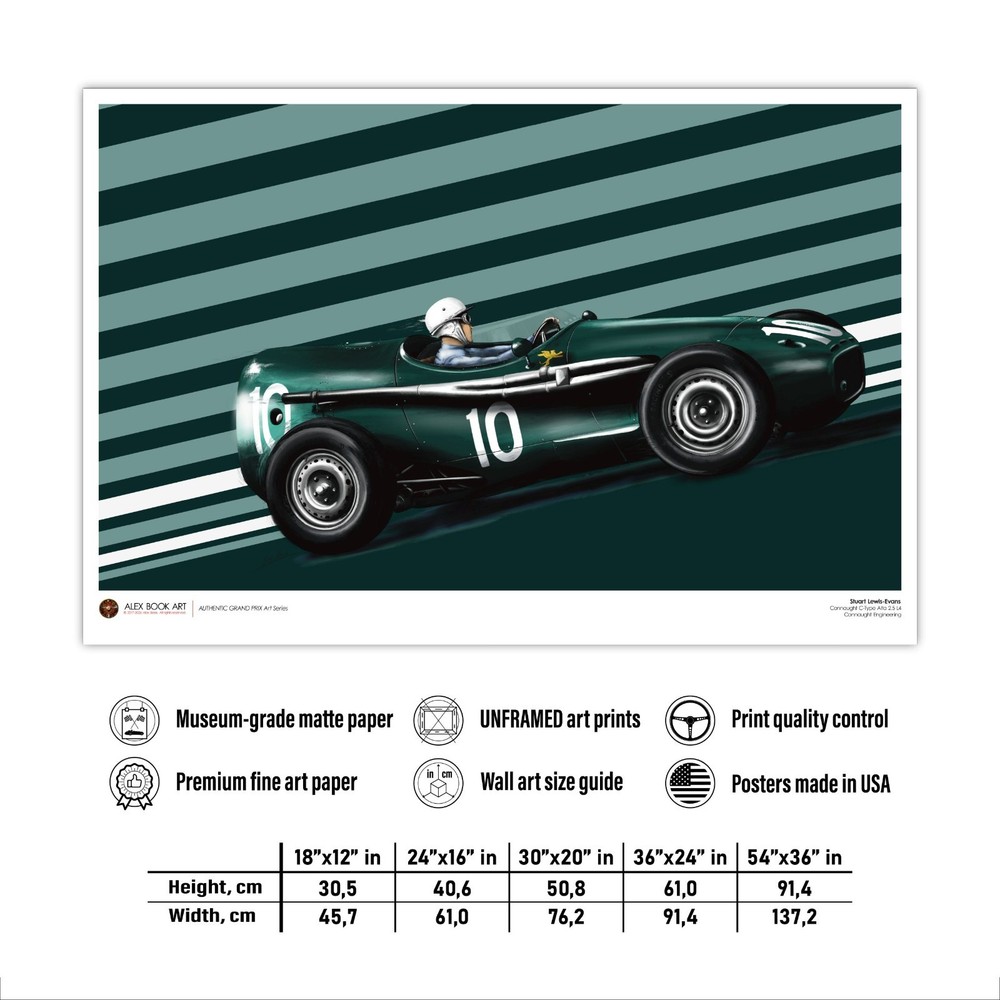 Driver: Stuart Lewis-Evans Race Car: Connaught C-Type Alta 2.5 L4 Team: Connaught Engineering Authentic Grand Prix Art Series - an original art print by Alex Book created as part of a collection dedicated to the history of Formula 1 racing. The artwork is developed through a digital oil painting process that combines traditional painterly technique with illustration and design, keeping a clear, readable composition and a documentary approach to motorsport history. Stuart Lewis-Evans and the Connaught Type C: A Swan Song in the Principality The 1957 Monaco Grand Prix remains a poignant chapter in British motor racing history, marking the sensational debut of Stuart Lewis-Evans and the final act for the Connaught Engineering works team. Lewis-Evans, a protégé of Bernie Ecclestone, arrived in Monte Carlo as a relative unknown, yet he stunned the paddock by qualifying his aerodynamic "toothpaste tube" Connaught on the third row. His drive was a masterclass in finesse, navigating the tight confines of the Principality to finish fourth, an extraordinary feat for a Grand Prix debutant in an underfunded privateer effort. The Connaught Type C was an ambitious evolution of the earlier B-Type, which had famously won the Syracuse GP in 1955. It was powered by a 2.5-liter Alta straight-four engine, featuring fuel injection and producing roughly 240–250 bhp. Technically, the car was noted for its advanced spaceframe chassis and an emphasis on aerodynamics, characterized by its distinctive long-nose bodywork and fairings around the cockpit. However, by 1957, the firm was facing terminal financial distress, and the cars lacked the sheer reliability and pace of the dominant Maseratis and Ferraris. Despite these hurdles, Lewis-Evans’ fourth-place finish at Monaco was the highest ever achieved by a Connaught in a World Championship event and served as the team’s final classification before insolvency forced their withdrawal from the sport. This performance instantly vaulted Lewis-Evans into the elite tier of drivers, leading to his subsequent signing by Tony Vandervell for the Vanwall team. The 1957 Monaco race thus stands as a dual monument: the birth of a new British star and the dignified exit of a pioneering manufacturer that helped pave the way for the British "Garagista" revolution. Each art print is produced on museum-grade 175 gsm matte fine art paper using high-quality archival inks for sharp detail, balanced contrast, and long-lasting durability. The print is professionally assembled in the USA from globally sourced materials under controlled production standards, carefully packed for safe shipping, and supplied without a frame so collectors can choose their preferred presentation. EU representative : HONSON VENTURES LIMITED, 3, Gnaftis House flat 102, Limassol, Mesa Geitonia, 4003, CY Product information : Generic brand, 2 year warranty in EU and Northern Ireland as per Directive 1999/44/EC Care instructions : If the poster does gather any dust, you may wipe it off gently with a clean, dry cloth.