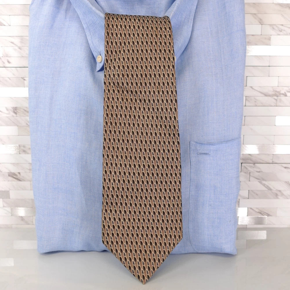 FORT NORMAN Men Navy Tan Geometric Necktie 100% Silk Art Abtract Micro Feather Pointed, Regular width & Length Made of 100% Silk Handmade Dry Clean Only Geometric Art Abtract, Micro Feather Pattern Good Condition 🌱🌿 Proud to be a member of Eco - Packaging Alliance & utilize a sustainable packaging. 🌳 🇺🇸 USA - New York City Seller 🇺🇸 ALL our necktie are Top High Quality Worldwide Brands & Guaranteed 100% Authentic. Mostly 95% of our Necktie items are Likely New, Unused from stores or Excellent pre-owned condition. Please note, some item have mild crease/s for storage and shipment. Ready to Ship items out Same or Next Business with tracking confirmation. Additional Necktie for $2 shipment for Domestic. Happy to bulk sell and combine shipping on multiple purchases won. Worldwide shipping available. Proudly posting 100+ New Listings everyday, 7 Days a week. Add me as a Saved Seller & Check back daily Items taken in photography - All colors bright & vibrant, actual item may differ in color in monitor or mobile screen & every individual may see colors differently. Kindly review all photos, conditions, & flaws if indicated. I'm grateful for offers & willing to negotiate so you can have these items. If you have questions, don't hesitate to message me. Thank You Exclusion: Shirt is not included for sale C1127-CY9-01