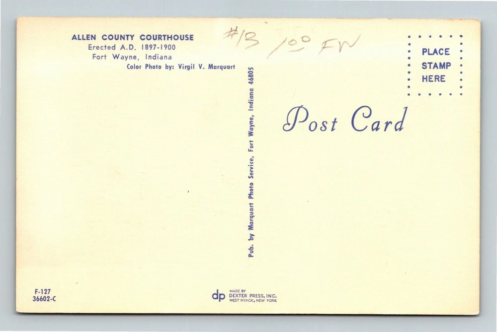 Fort Wayne Indiana, ALLEN COUNTY COURTHOUSE, Clock Tower, Dome Vintage Postcard