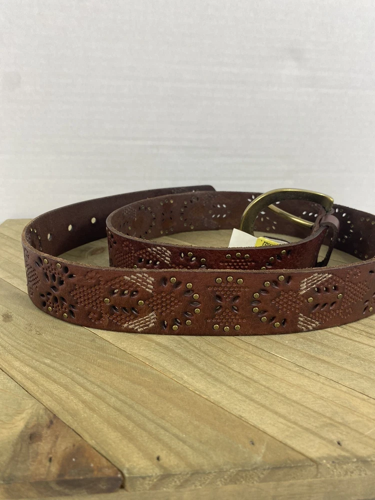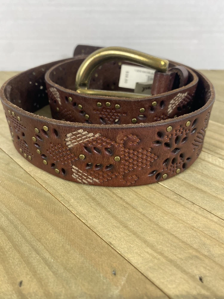 This Fossil belt is in good condition! It is new with the tags still on. From the buckle to the edge of the belt it measures 43” and is a size Large. If you have any questions please feel free to ask! Thank you for looking!