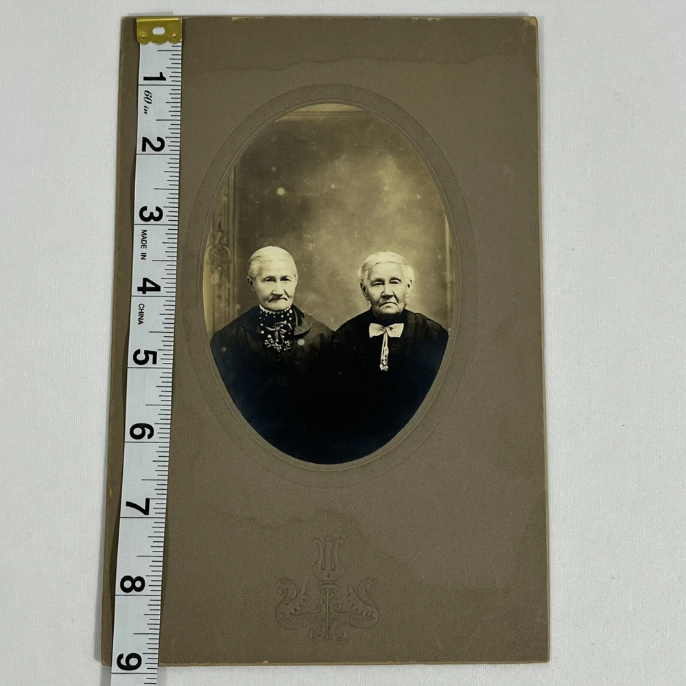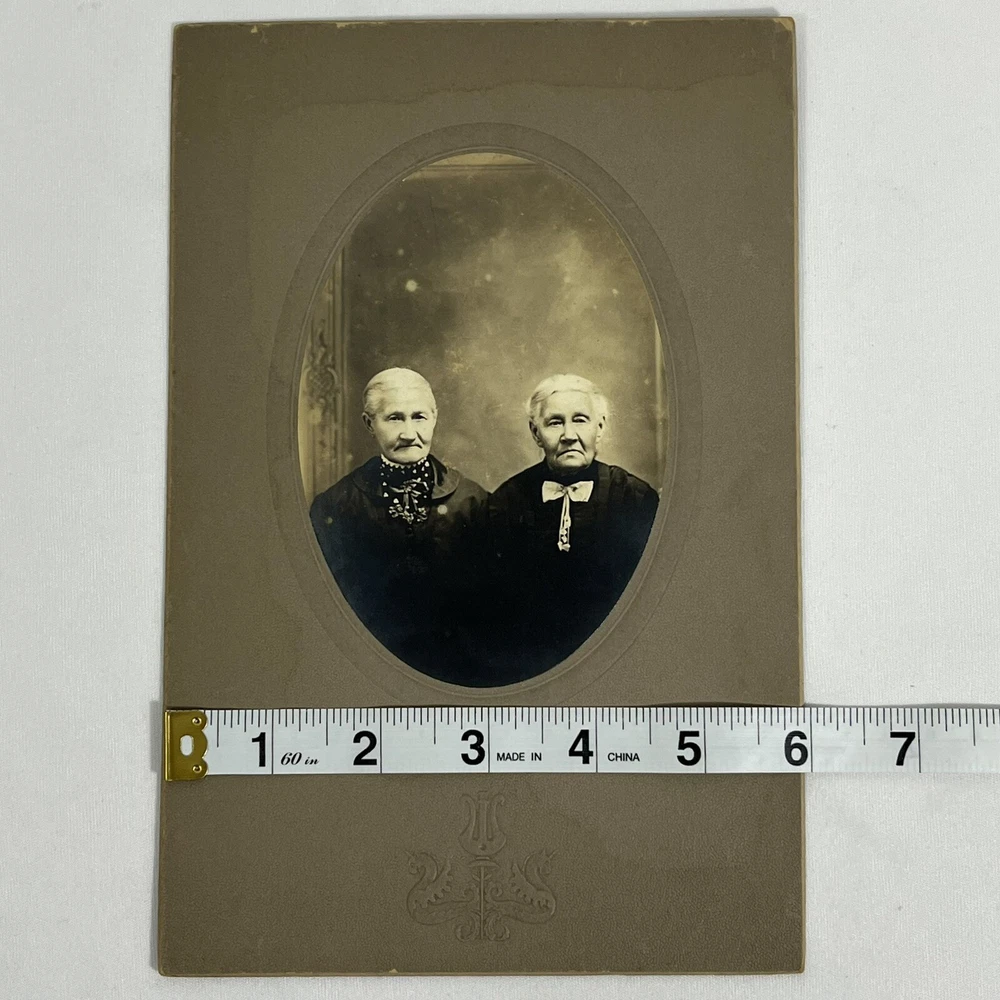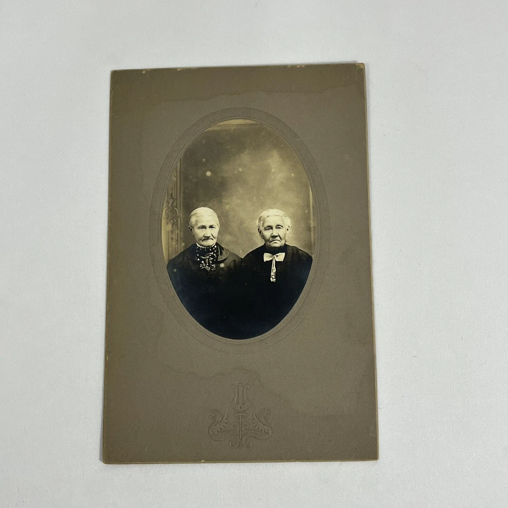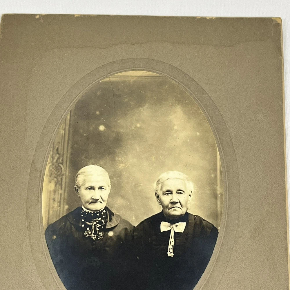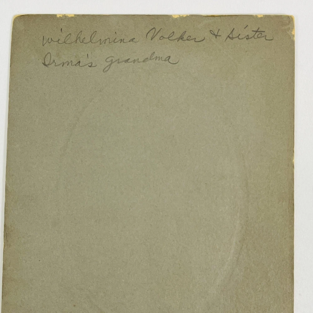 Writing on the back Wilhelmina Volker & sister Irma’s grandma - see photos for measurements and condition details - smoke free home Antique Photo Portrait Sisters Grandma Aunt Oval Card stock Mounted Early 1900’s