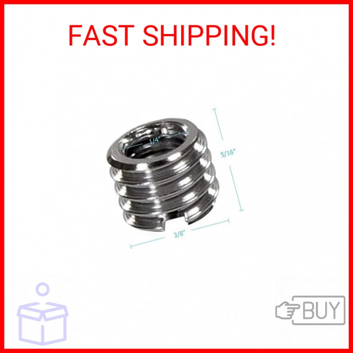 Foto&Tech Metal 1/4 inch to 3/8 inch Tripod Thread Adapter, Easy Mount Convert Screw Adapter for Tripod Monopod Ballhead, Reducer Bushing for Camera Video Equipment DSLR SLR Mic Boom Stand (5 Pieces) - 1/4" to 3/8" Convert Screw Adapter - Thread Adapter with female 1/4" thread to male 3/8" thread, the height is 5/16" - Compatible to Lens Plate Button Heads, Arca Swiss Type Button Heads - Fit as well as original reducer - Made of metal, solid and durable Payments We accept the following payment methods PayPal Support Our dedicated customer support team is here to assist you from 9AM to 5PM Monday through Friday, excluding public holidays. Should you reach out to us and not recieve an immediate response, it's likely due to a higher-than-usual volume of inquires. We want to reassure you that your concerns are important to us, and we're working dilligently to get back to you. Expect a response by the next business day at the latest. Your understanding and patience are greatly valued as we strive to provide you with the best support possible! Shipping All orders are processed within 5 business days. Shipping estimates may be shown on this listing by eBay, and these are often not an accurate reflection of our shipping times. If we are experiencing a high volume of orders, shipments may be delayed by a few days. Please allow additional days in transit for delivery. If there will be a significant delay in shipment of your order, we will contact you via message. Shipping rates & delivery estimates Shipping is often free, but if charges for your order apply they will be calculated and displayed at checkout.