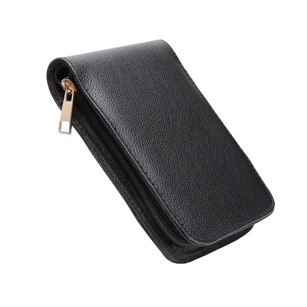 Description This pen case is a perfect solution to keep your pens neat, easy accessible and well protected. Come and buy it to keep your pens perfect in every minute! Condition: 100% New Color: Black Material: PU Faux Leather Size: 17 x 12 x 3 cm / 6.7 x 4.7 x 1.2 inch Two-layer design with 6 straps on each side (total for 12 pens) Fit Pens below 155mm Length, 20mm diameter. Also a great gift to friend, traveler, art hobbyists, artist, designer, pen collector etc. Package Includes: 1 X Pen Case High quality Pu Leather & fine Stitched Edges for long time use and easy cleaning Tensile Rubber straps hold pens securely and make it fit different sizes of pens with diameter up to 20mm (3/4inch) Two-layer design keeps your pens well organized, easy accessible and better protected Classic Black Color, Golden Zipper for convenient use. Portable design for travel, commuting or outdoor work. Pens are for demo only and not included. Designed mainly for pen collector, designer, artist, art hobbyists, traveler, etc.