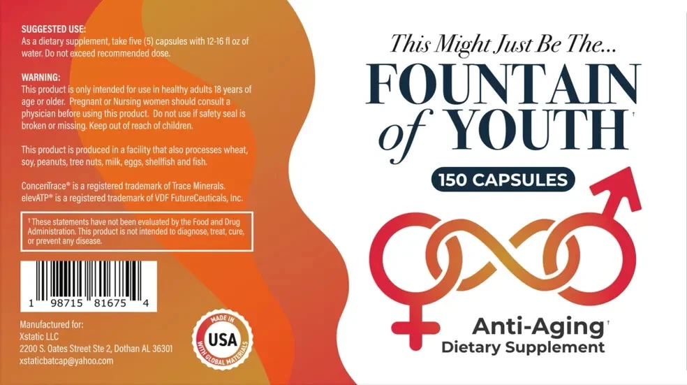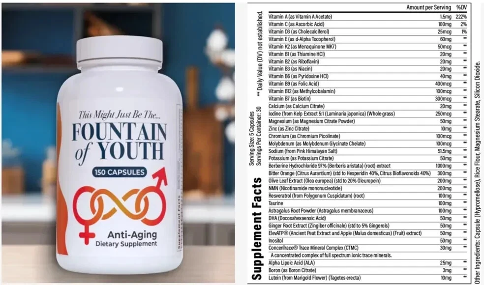 Fountain of Youth Anti-Aging Dietary Supplements 150 Capsule Bottle. Wellness, Longevity, Energy, Mental Clarity, Anti-Aging