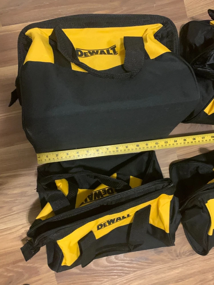 Selling 4 Brand new DeWalt heavy duty 13" Contractor Tool bags. Check out my other items and let me know if interested in combining any tools, batteries, etc into one sale. Let me know if you have any questions. Cheers.
