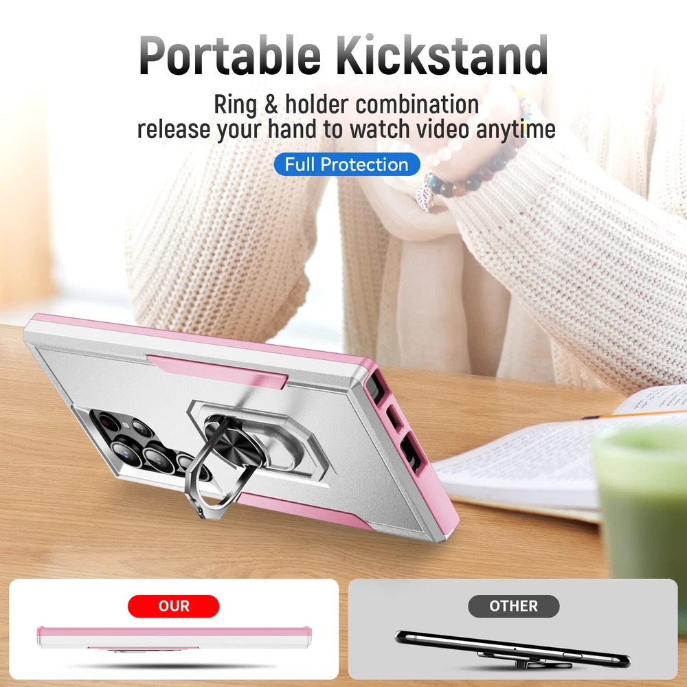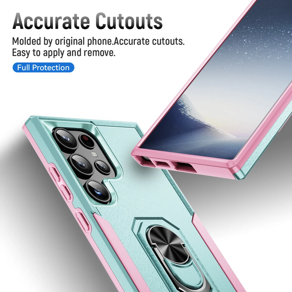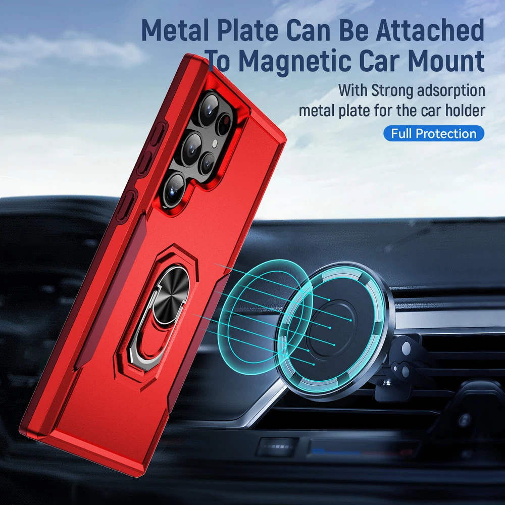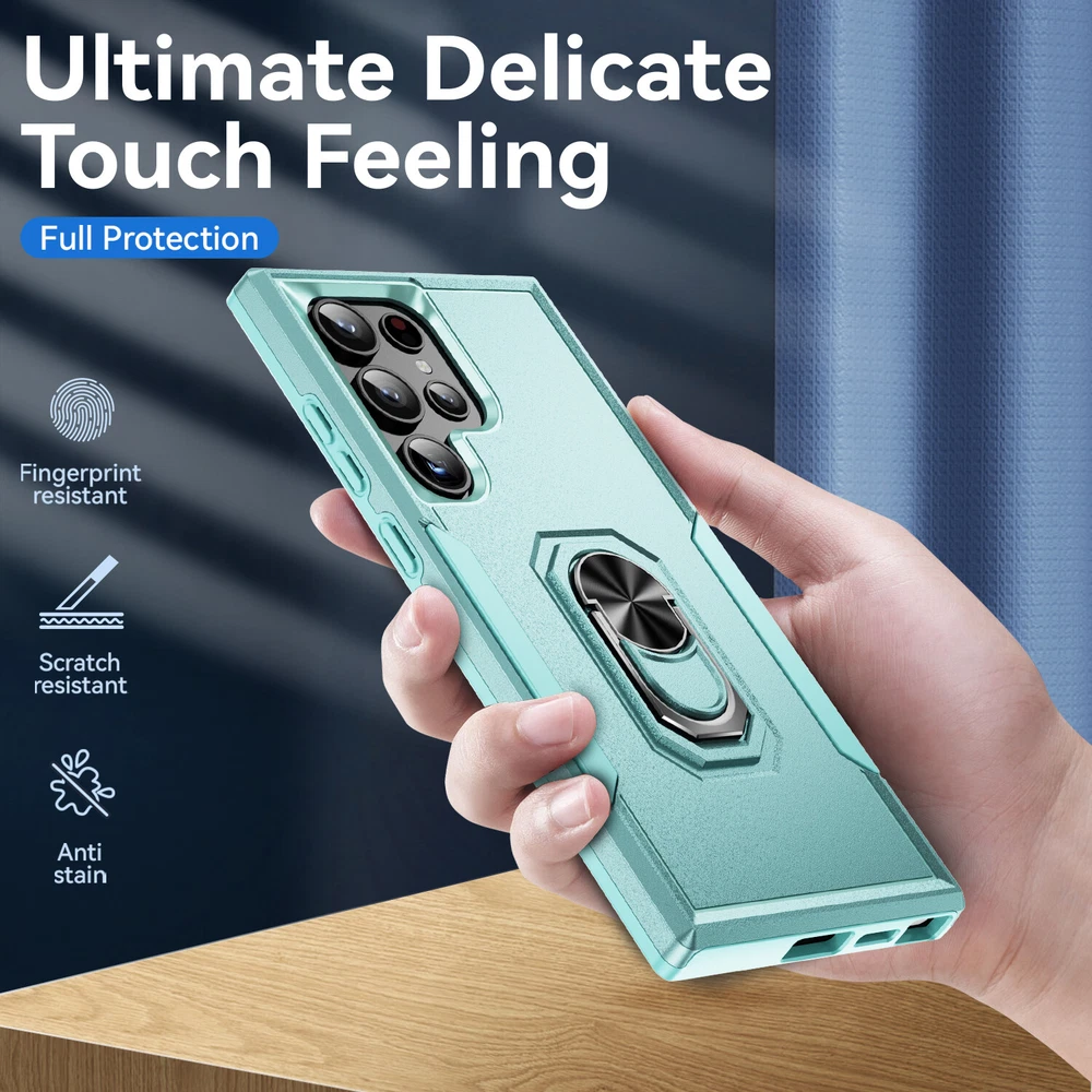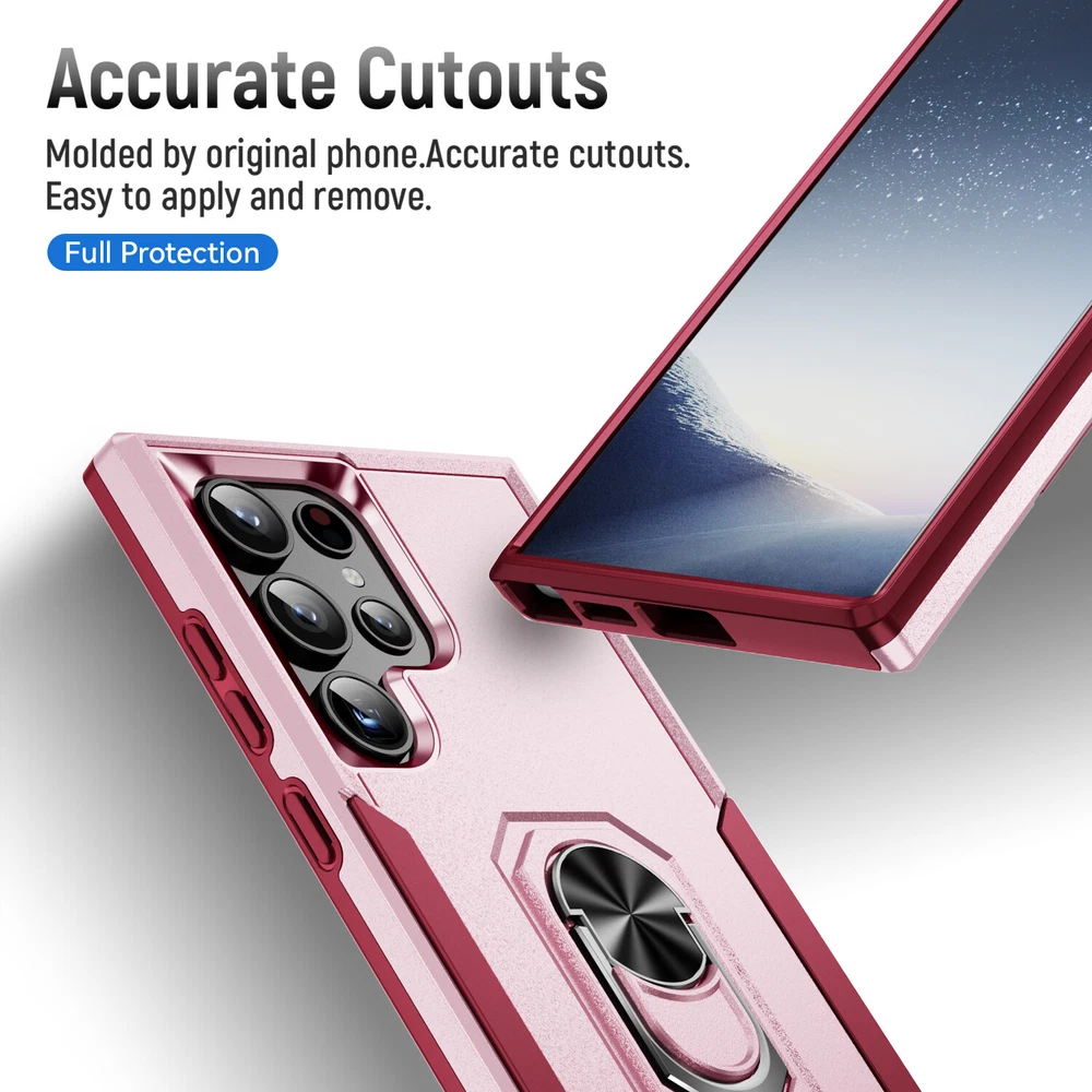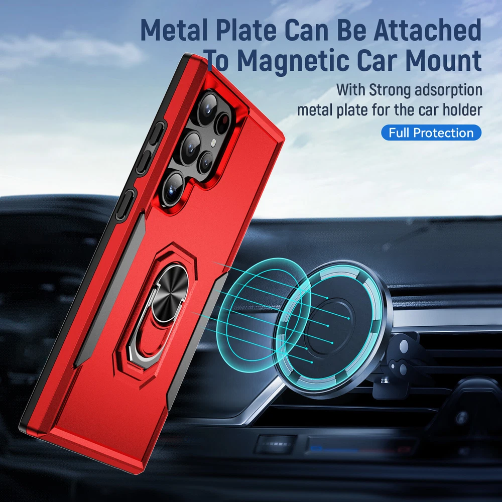 Fr Samsung Galaxy S25 Ultra S24 FE S23 Magnetic Ring Stand Case Screen Protector Key Features: 360° Rotating Magnetic Kickstand – Features a durable metal ring stand for hands-free video calls, streaming, or browsing, compatible with magnetic car mounts for added convenience. Shockproof & Durable Protection – Crafted with high-quality materials to guard your phone against drops, impacts, and scratches, ensuring long-lasting reliability. Precise Fit & Functionality – Designed with exact cutouts for buttons, ports, and the camera, offering seamless usability without removing the case. Lightweight & Comfortable Grip – Slim yet protective, this case provides a secure, ergonomic grip while maintaining your phone's sleek profile. Package: 1* Case Cover (Phone Is not included!) 1* Screen Protector