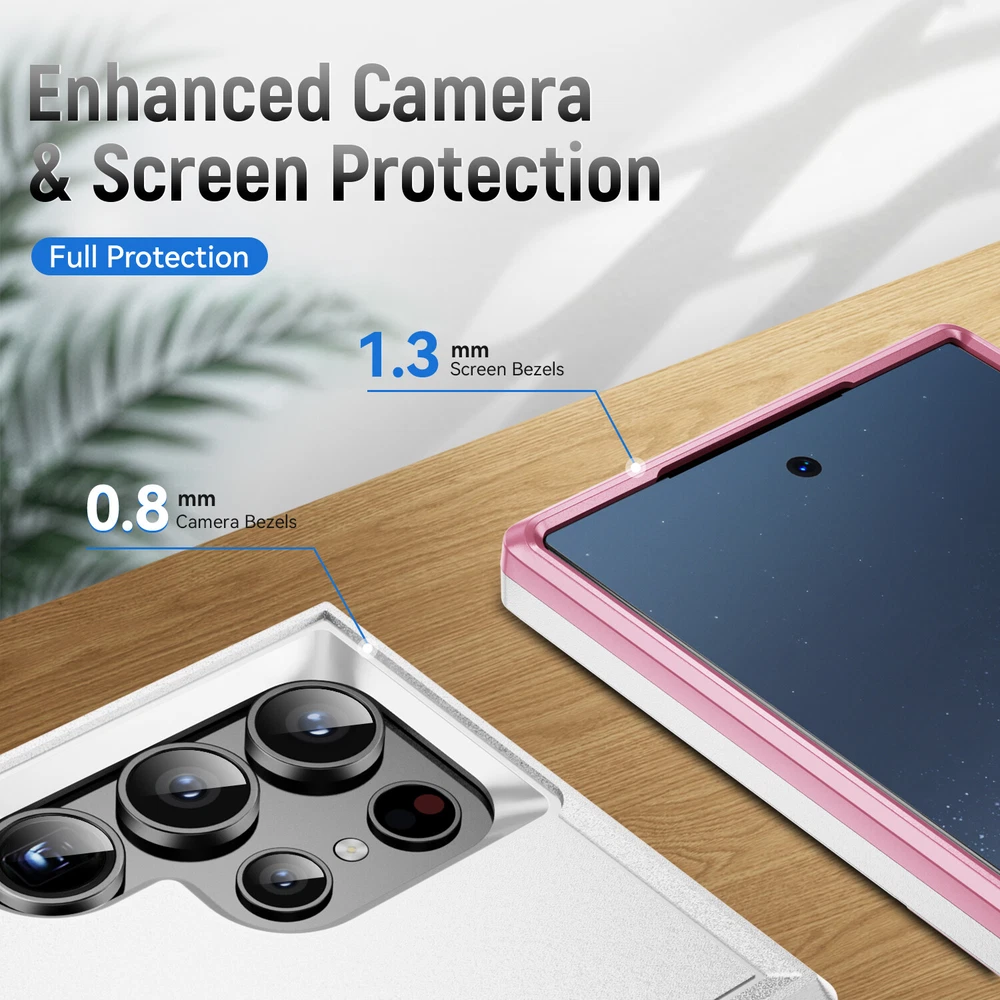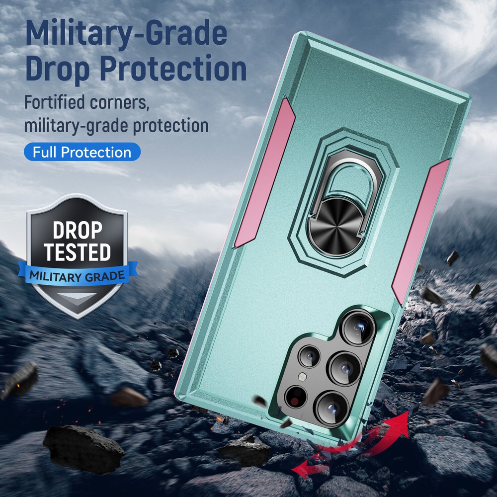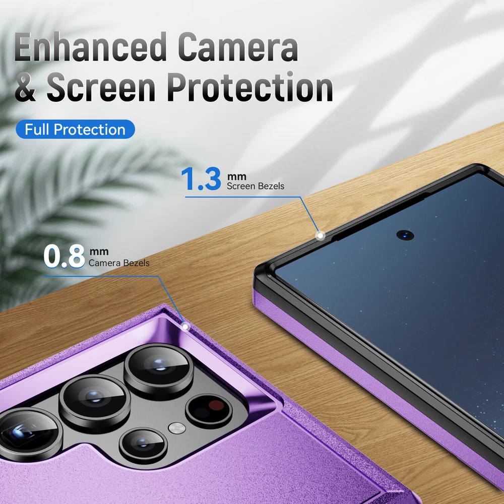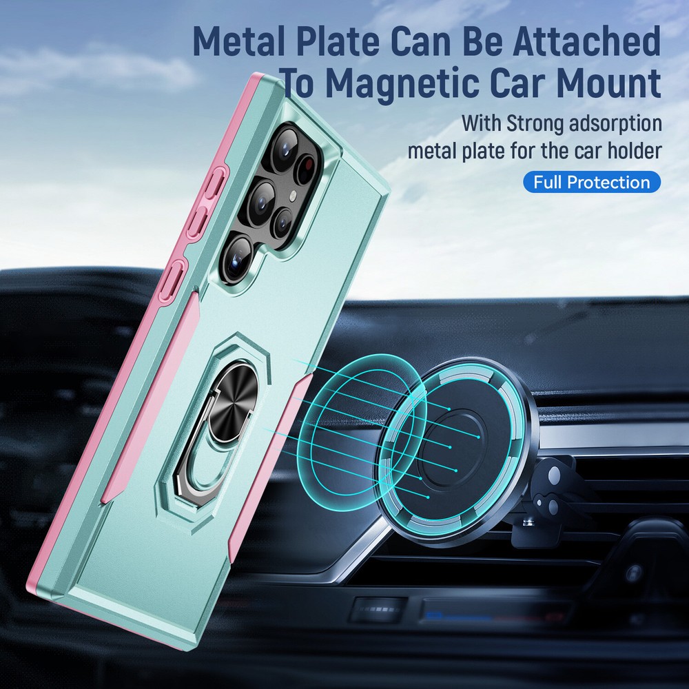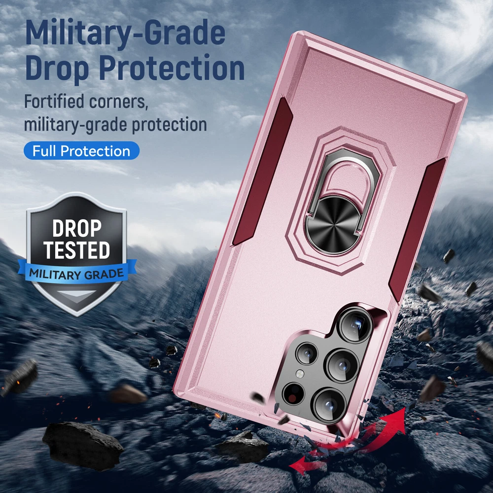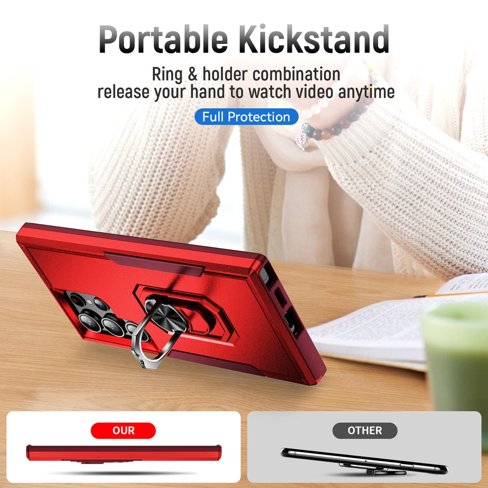 Fr Samsung Galaxy S25 Ultra S24 FE S23 Magnetic Ring Stand Case Screen Protector Key Features: 360° Rotating Magnetic Kickstand – Features a durable metal ring stand for hands-free video calls, streaming, or browsing, compatible with magnetic car mounts for added convenience. Shockproof & Durable Protection – Crafted with high-quality materials to guard your phone against drops, impacts, and scratches, ensuring long-lasting reliability. Precise Fit & Functionality – Designed with exact cutouts for buttons, ports, and the camera, offering seamless usability without removing the case. Lightweight & Comfortable Grip – Slim yet protective, this case provides a secure, ergonomic grip while maintaining your phone's sleek profile. Package: 1* Case Cover (Phone Is not included!) 1* Screen Protector
