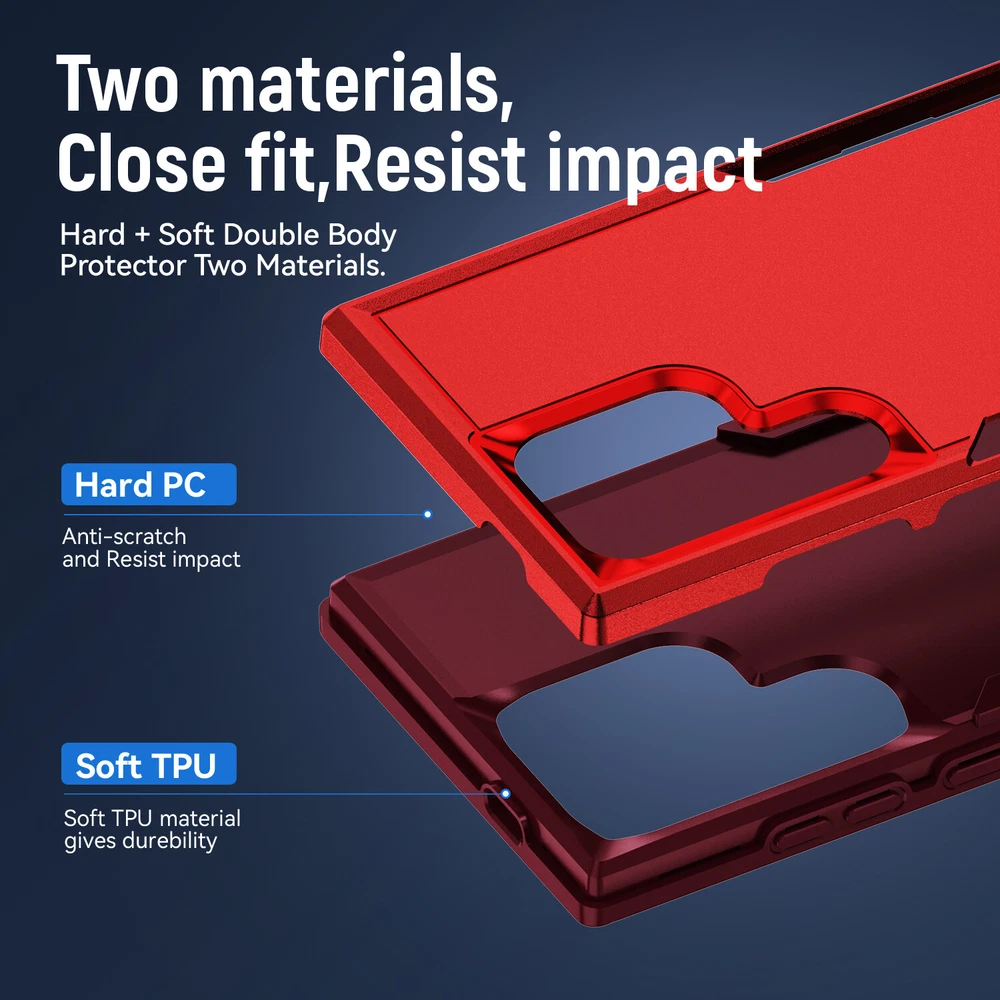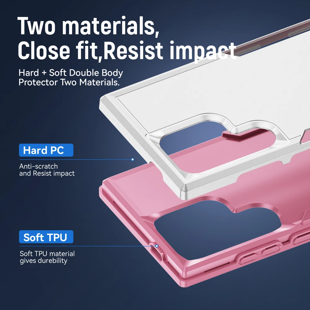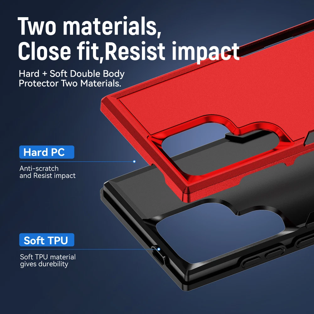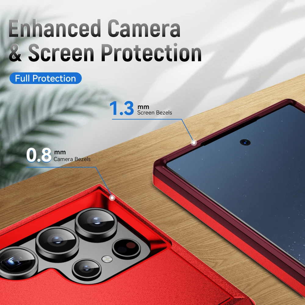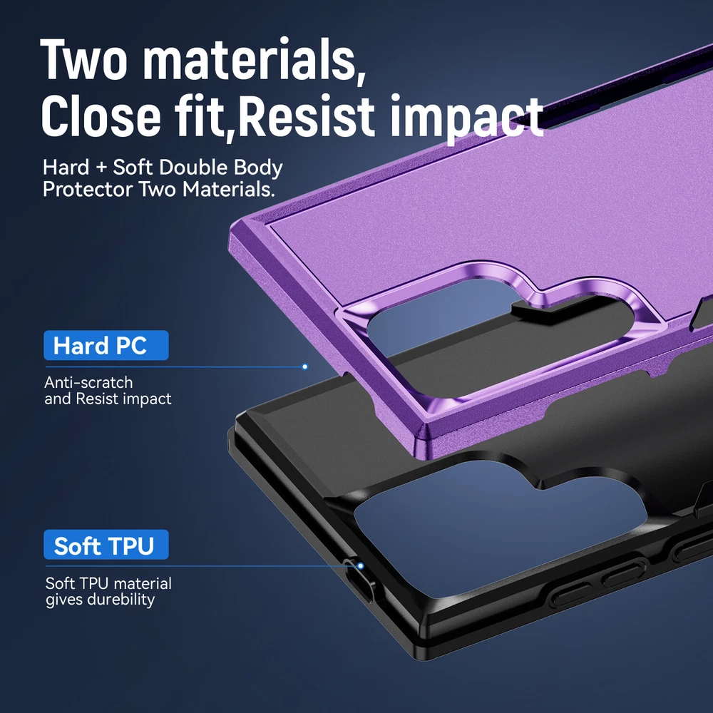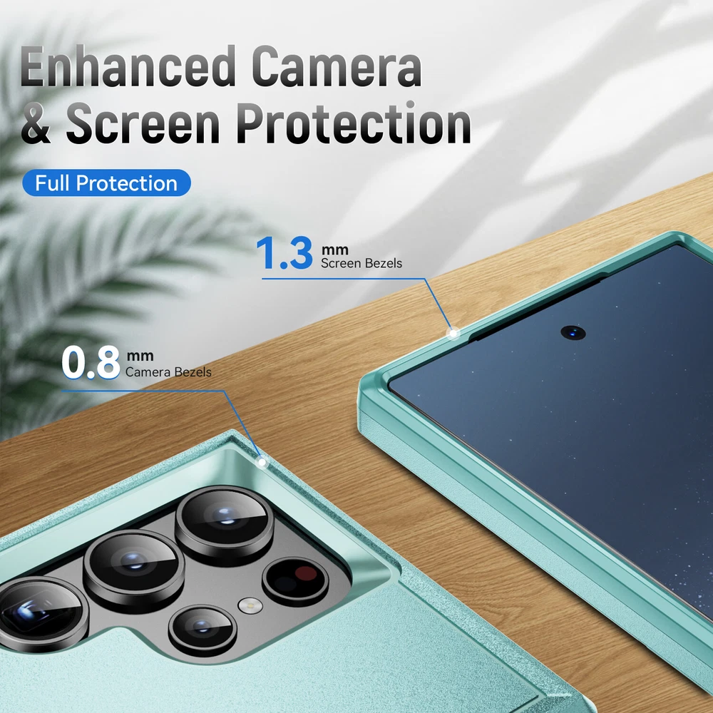 Fr Samsung Galaxy S25 Ultra S24 FE S23 Magnetic Ring Stand Case Screen Protector Key Features: 360° Rotating Magnetic Kickstand – Features a durable metal ring stand for hands-free video calls, streaming, or browsing, compatible with magnetic car mounts for added convenience. Shockproof & Durable Protection – Crafted with high-quality materials to guard your phone against drops, impacts, and scratches, ensuring long-lasting reliability. Precise Fit & Functionality – Designed with exact cutouts for buttons, ports, and the camera, offering seamless usability without removing the case. Lightweight & Comfortable Grip – Slim yet protective, this case provides a secure, ergonomic grip while maintaining your phone's sleek profile. Package: 1* Case Cover (Phone Is not included!) 1* Screen Protector