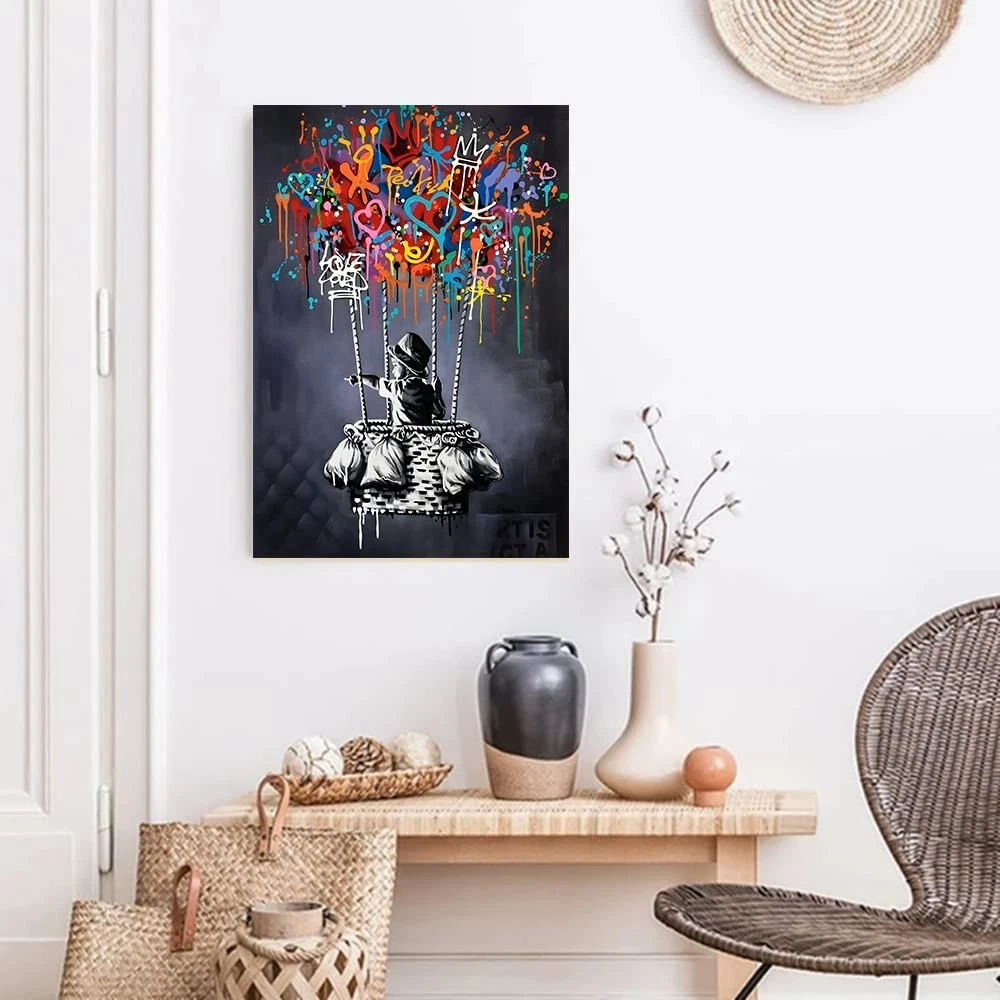 Framed Banksy Street Graffiti Wall Art Decor Large Abstract Pictures Canvas Painting Prints Colorful Modern Contemporary Poster Artwork Stretched for Wall Home Bathroom Bedroom Living Room Ready Hang 1.Framed Banksy wall art Prints On Canvas . High quality, high resolution High Definition Giclee pictures prints on premium artistic canvas. Stretched and Framed decor canvas paintings ready to hang for home living room bedroom office decorations wall decor. 2.Behind each panel canvas prints has a black hook already mounted on the wooden bar for easy to hang. modern wall decor for living room bedroom, kitchen, house, office, hotel, dining room, bar etc, makes your room look full of vitality and creativity. 3. Fashion abstract poster is the perfect wall decoration painting, home decorations and office decorations ,cuadros de pared de sala ,canvas wall art is the modern way to brighten the wall of your family, and relax after work. Perfect gift idea for wedding, anniversary, thanksgiving, christmas, mother's day, father's day, holidays, Valentine's Day, birthday and others. 4.Banksy art wall room decor for living room is a great gift for your family, western decor for bedroom, friends and relatives, teens rooms, kids room, girls or boys room. Due to different brands of monitors the actual wall art color may be slightly different from the product image. 5.Landscape wall art, minimalist line wall art Look great as an decorations,succulent wall decor, cute wall decor, black art wall decor, orange bathroom decor, wall art bedroom aesthetic,and it brings a unique and cool feeling to the entire experience. If there is any problem just contact us,we will try our best to help you.