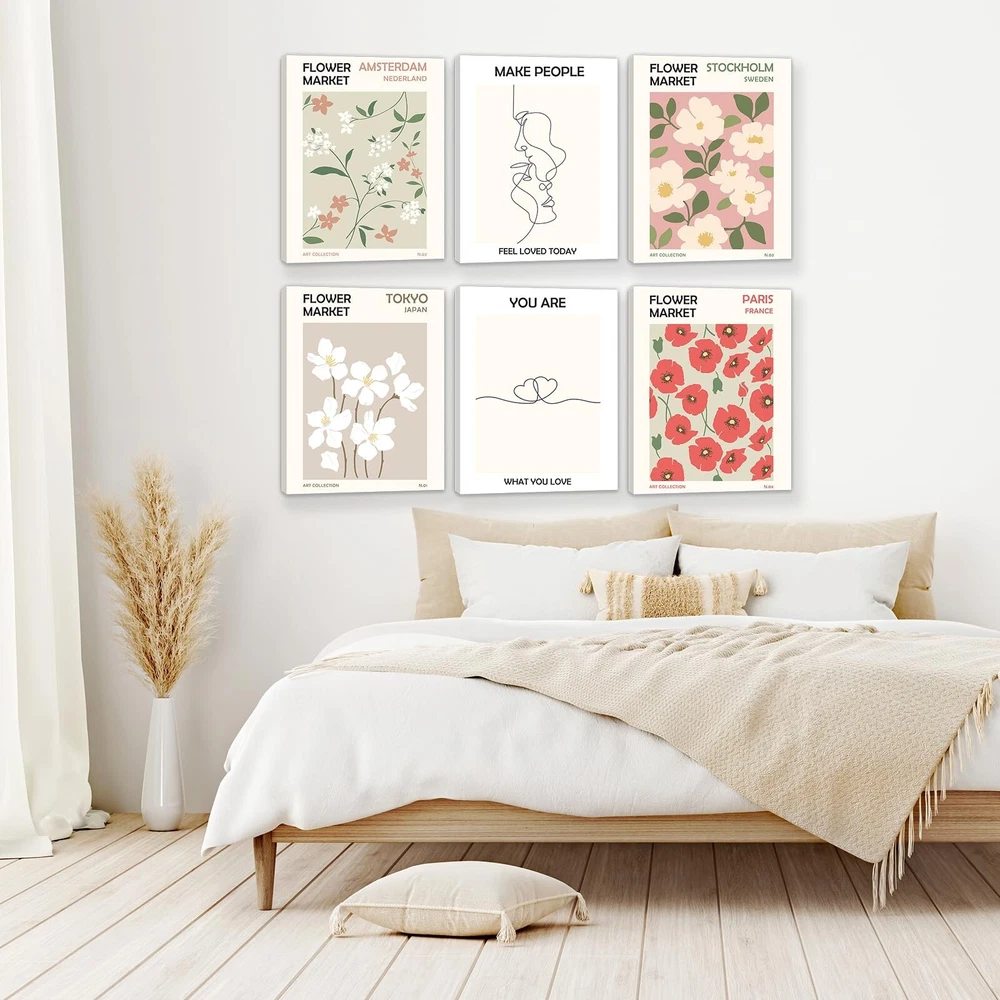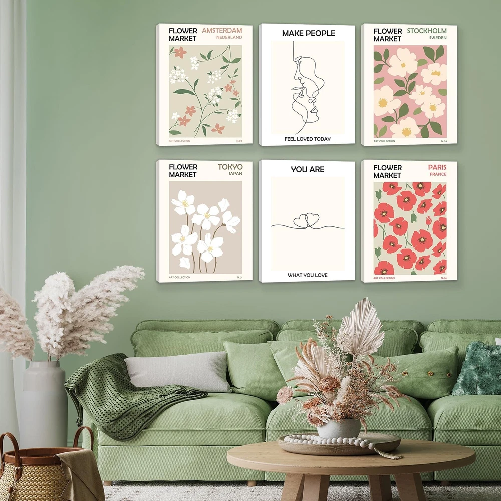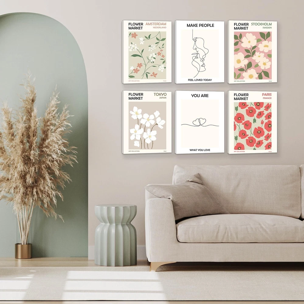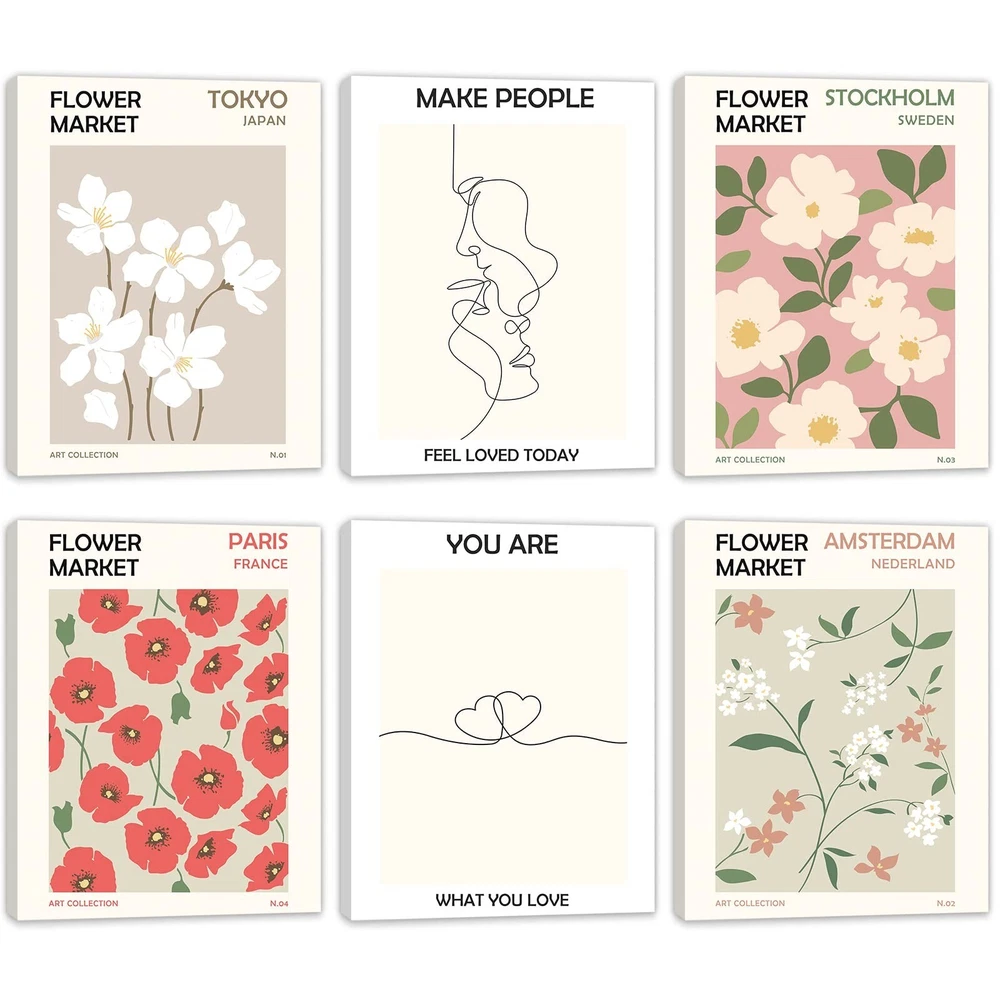 Framed Flower Market Poster Decor Set of 6 Minimalist Line Wall Art Prints with WOODEN FRAM INSIDE Botanical Poster Vintage Canvas Print Colorful Floral Wall Decor (11"x14" FRAME) Product Details Size: 11"x14" WOODEN FRAME INSIDE Color: Flower Love Art Brand: HoozGee MPN: Does not apply UPC: Does not apply EAN: Does not apply Product Dimensions: 14 x 11 x 0.2 inches Item Weight: 1.8 pounds Country of Origin: China Date First Available: April 28, 2023 DESIGN CONCEPT - Framed flower minimalist line wall art prints design pictures set of 6. wall art canvas prints wall decoration created with flower line and couple love theme. Suitable for bathroom, office, bedroom, study and other wall decoration. HIGHT QUALITY PRINTING - The framed poster is printed on canvas, it is a kind of better material for the poster, it is bright colors, soft texture, hight toughness, anti-wrinkle, fade-resistant feature and use waterproof inks. It is ideal for home decoration, office decoration, gift. READY to FRAME - Please note that our pink makeup wall decor picture frame collage set come with WOODEN FRAME INSIDE, can make up a perfect set of gallery wall art. MODERN WALL DECOR - Decorate your Home with Minimalist Art. They will Fit Perfectly and can become a part of an Elegant Interior of your Living room, Bedroom, Kitchen, Bathroom, Gym, Office, Workspace, Dorm room and anywhere you can think of. TWO SIZES AVAILABLE - Includes Set of 6 FRAMED flower canvas prints in two sizes. 8"x10" or 11"x14" available. Description: Factory Strength: We are a professional decorative painting manufacturer with many years of manufacturing and sales experience. We always adhere to the tenet of “high quality, good service”. I believe that our products will make your life better and the home environment more comfortable. Specifications: Size: (Optional) Material: Canvas Types: Canvas Painting (Not Hand Oil Painting) Technics: Spray Painting Medium: Waterproof Ink Feature: Bright colors, Soft texture, Hight toughness, Anti-wrinkle, Fade-resistant Applicable Places: Living Room, Bedroom, Children‘s Room, Background Wall, Wedding Decoration, Kitchen Restaurant, Hotel, Hospital, Bar etc. The poster is printed on canvas, it is a kind of better material for the poster, it is thick, storng, waterproof. It is ideal for home decoration, living room decoration, gift. Feature: Bright colors Soft texture Hight toughness Anti- wrinkle Fade-resistant Package Includes: 6 x Wall Art Prints (WOODEN FRAMED) Note: Please note that my art sets come with WOODEN FRAME INSIDE. Any frames are for display purposes only. Due to how colors are displayed by different electronic screens, actual colors may vary slightly from those shown.