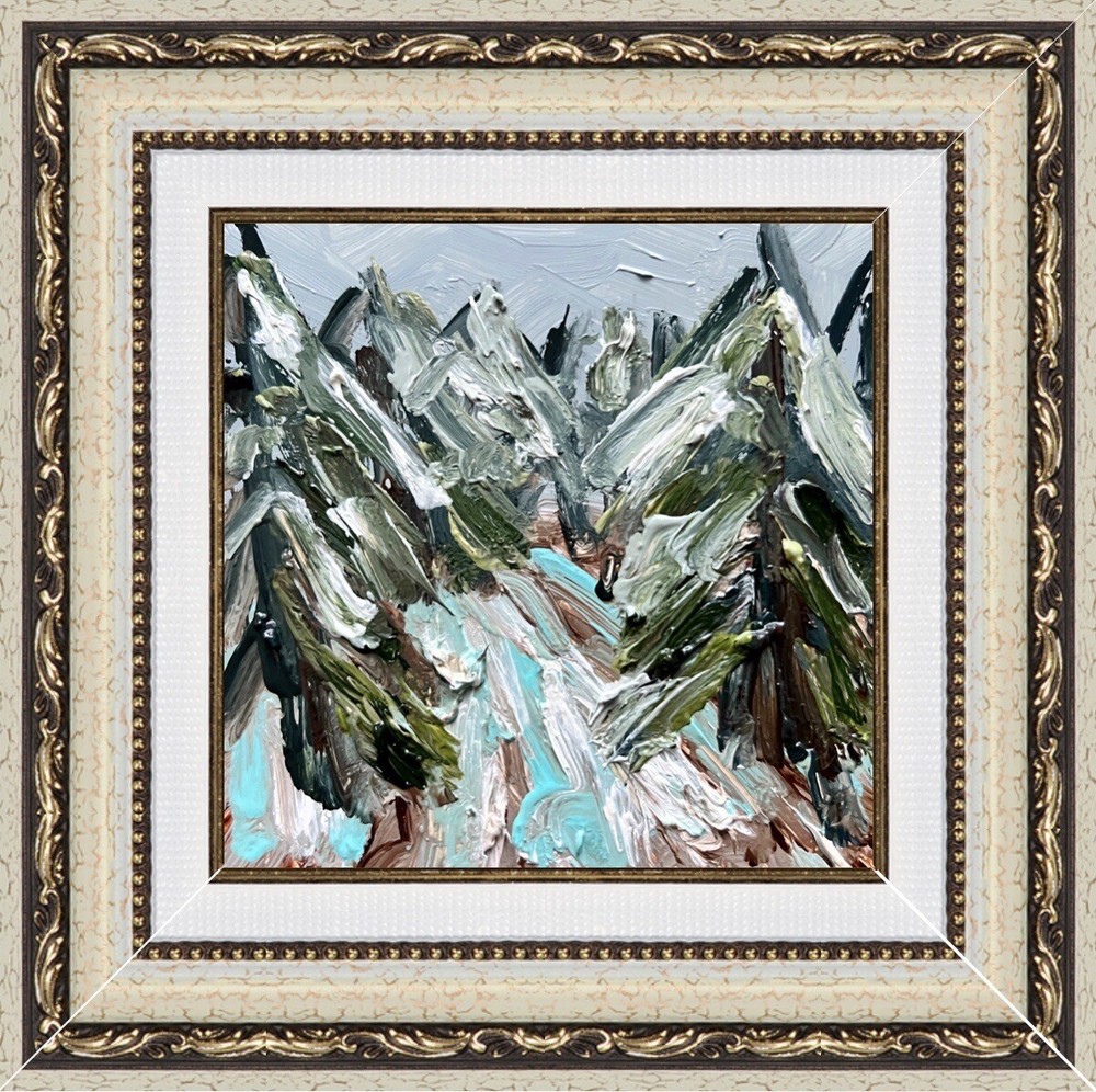 Framed Winter Forest Abstract Oil Painting - Pinery Landscape with Trees