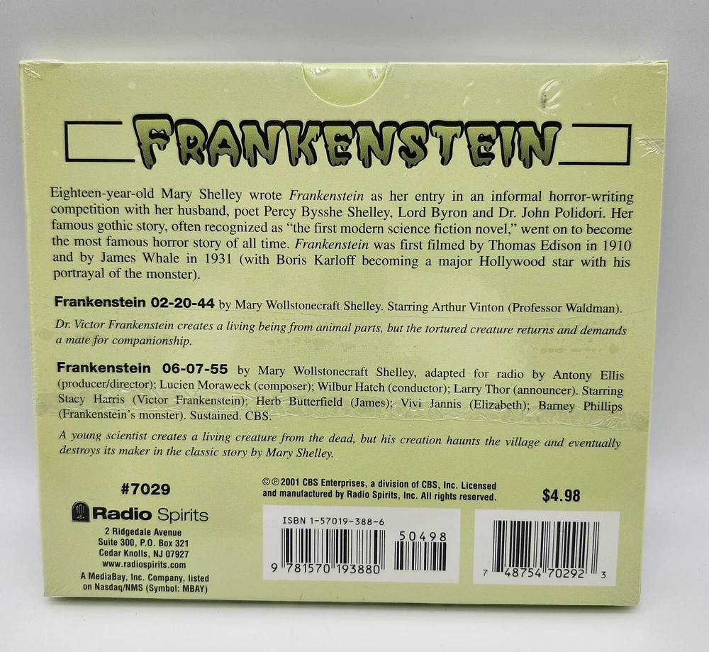 Frankenstein (Adventures Old Time Radio) 1 Hour Audio CD - SEALED
