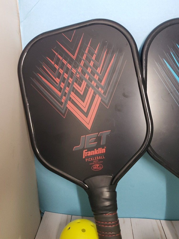 Franklin Jet Pickleball Paddle Lot of 2 Pair Red Blue w/ 4 balls - Good Grip! Condition: pre-owned, see actual pics for condition