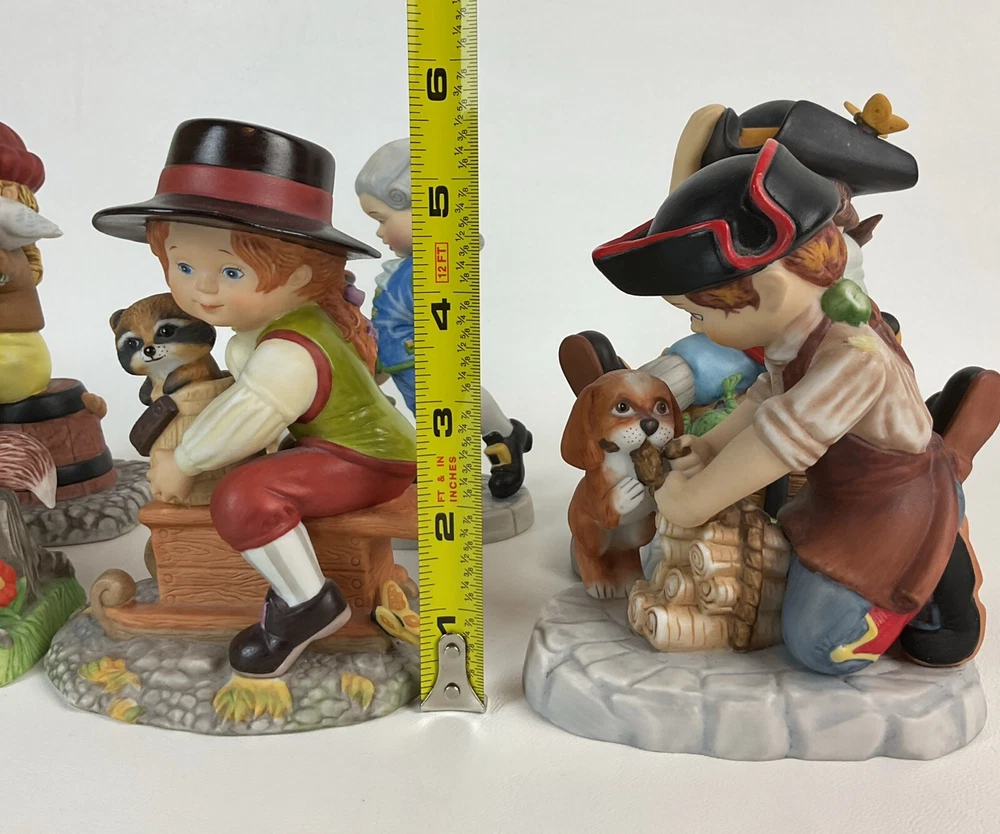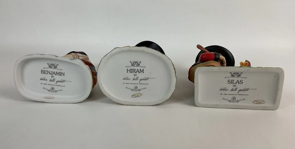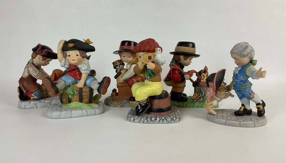 This set of 6 Franklin porcelain figurines features Debbie Bell Jarrett, a beloved character from the 1980s. Each figurine is crafted with intricate details and painted with vibrant colors, making them a perfect addition to any collection. The set includes male figurines and is suitable for boys of all ages. The figurines were manufactured in Taiwan in 1985 and are an excellent representation of the time period. These collectible sculptures are perfect for display in any room of your home and are sure to add a touch of nostalgia to your decor.