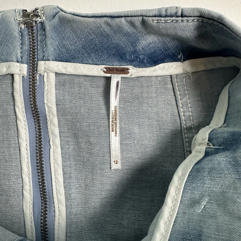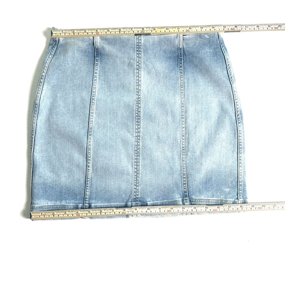 New without tags Perfect condition Back zipper closure Light wash blue denim Has some stretch See pictures for approximate measurements All sales are final.