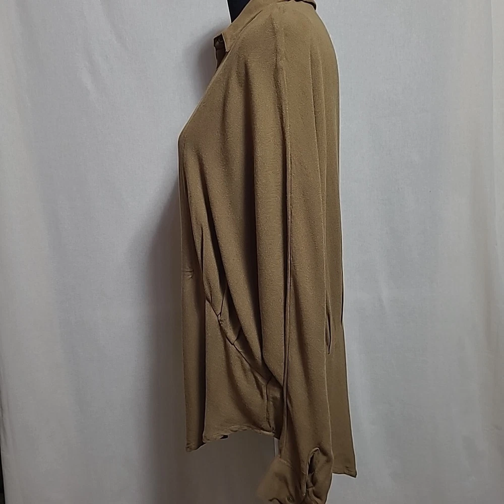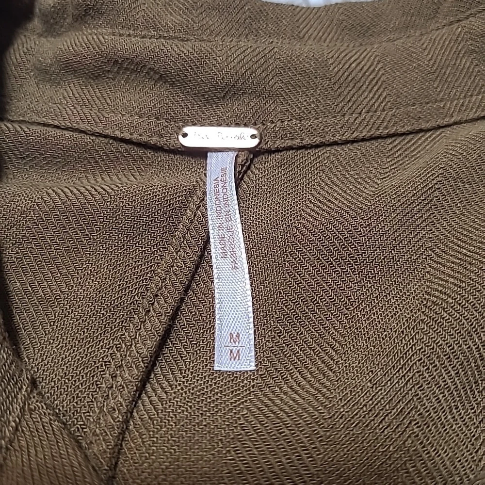 Free People Long Sleeve Drop Shoulder Top Size Medium Button Front Green Excellent Pre-Owned Condition. No rips, stains, or holes. See pictures for complete condition details and measurements. 100% Rayon Chest: 58 Inches Waist: 46 Inches Length: 30 Inches All items are sanitized according to platform policy.