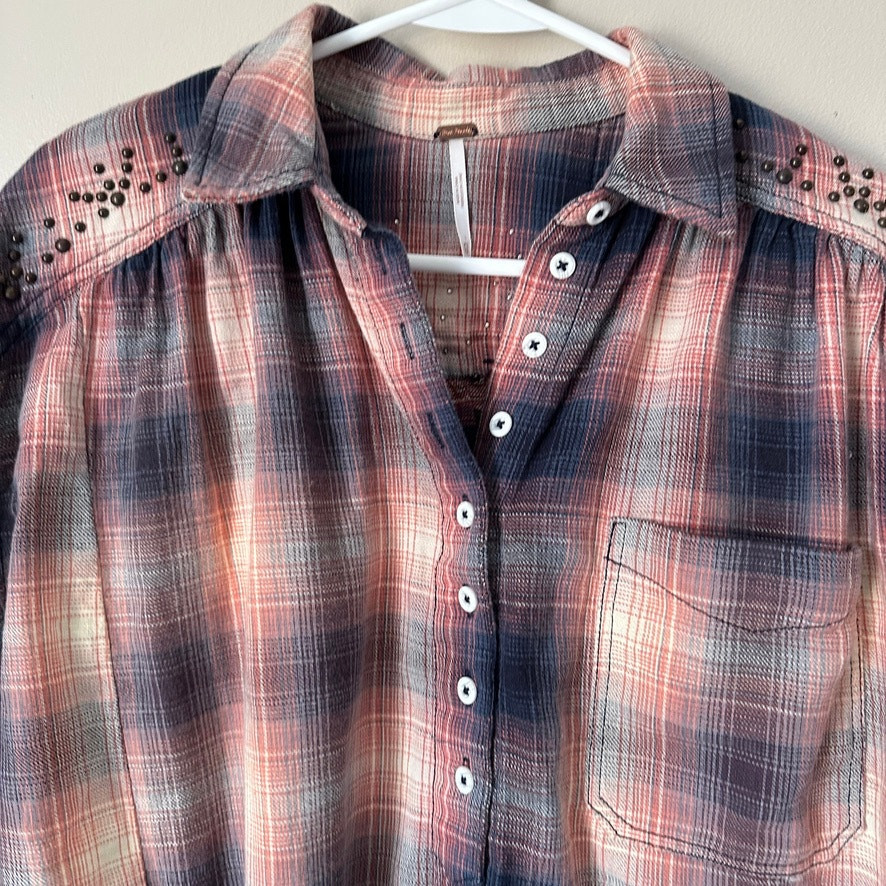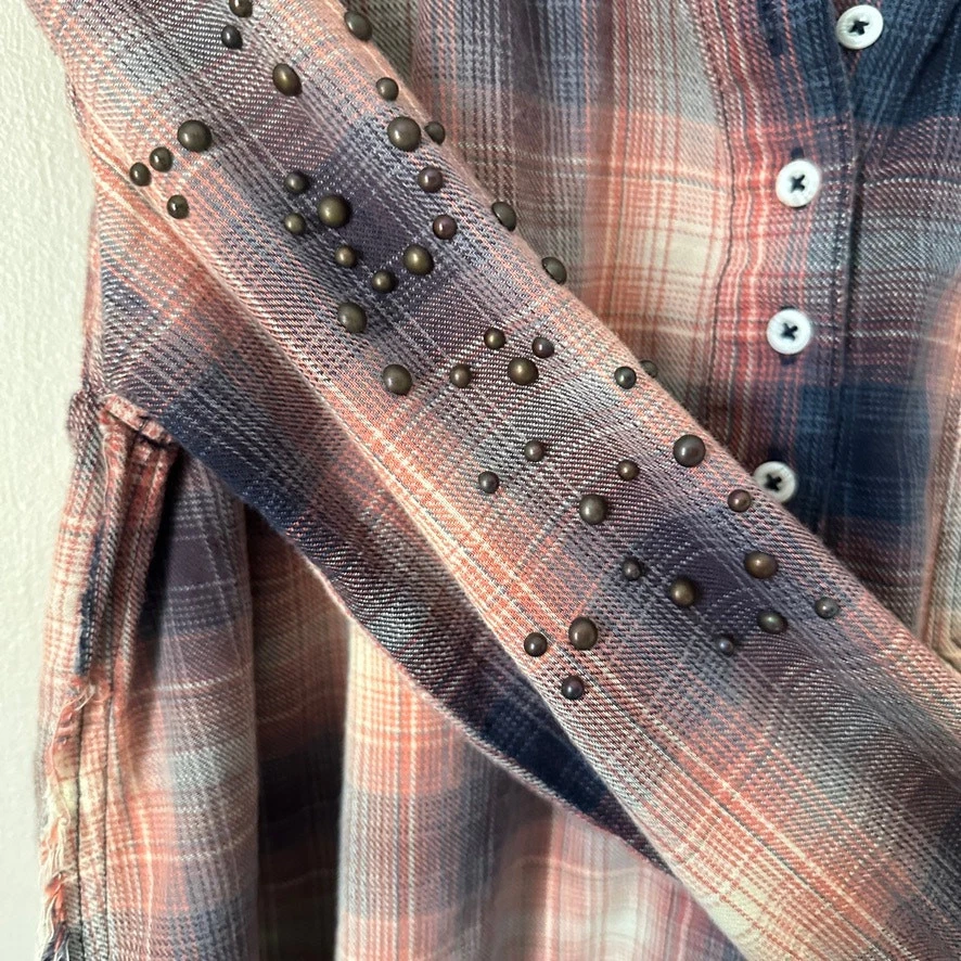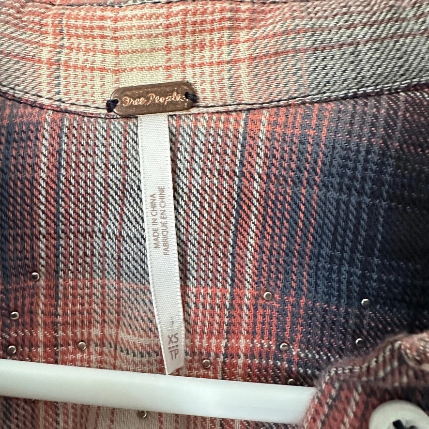 Free People Take On Me Checked Shirt Women XS Plaid Studded Grunge Boho Western Size: XS Approx. measurements: 22" across (pit to pit), 27" long (shoulder to hem) Condition: Pre-owned excellent. Pre-loved and in gently used condition. Light wear. no stains, rips, or holes. - see all pics for any wear/condition Actual colors may vary. We do our best to ensure that our photos are as true to color as possible. However, due to photographic lighting sources, inconsistencies of various monitors settings, we cannot guarantee that the color you see accurately portrays the true color of the product.