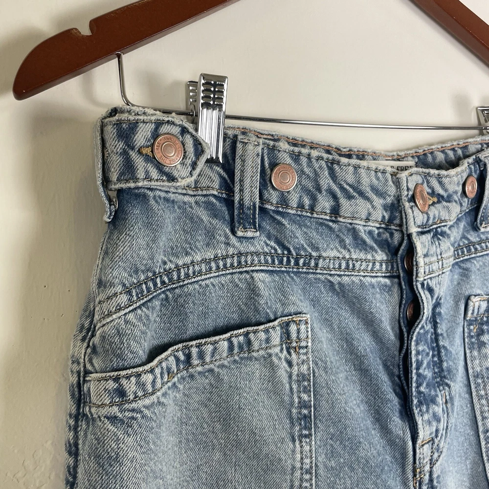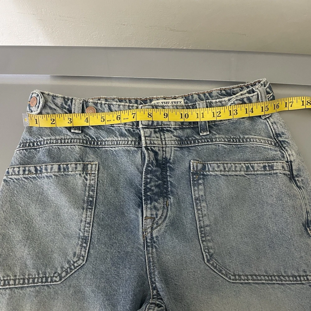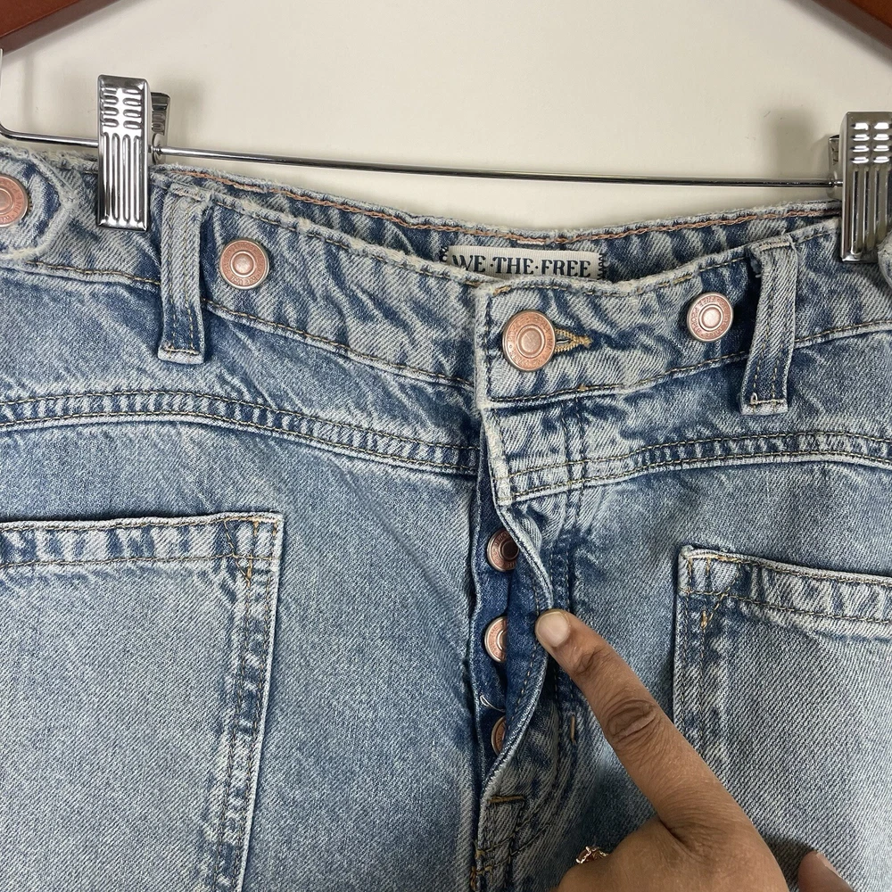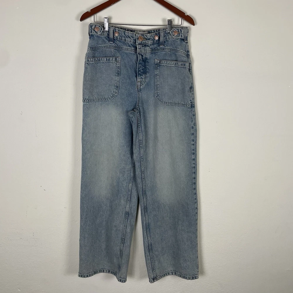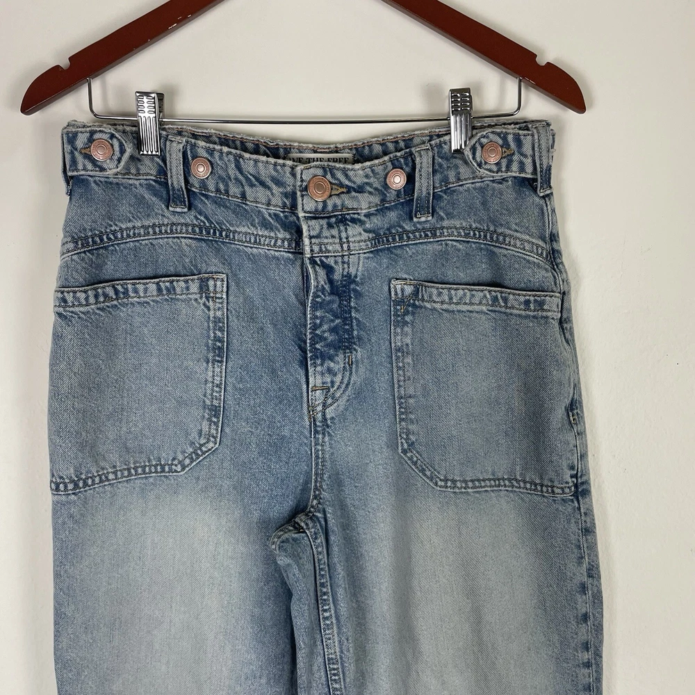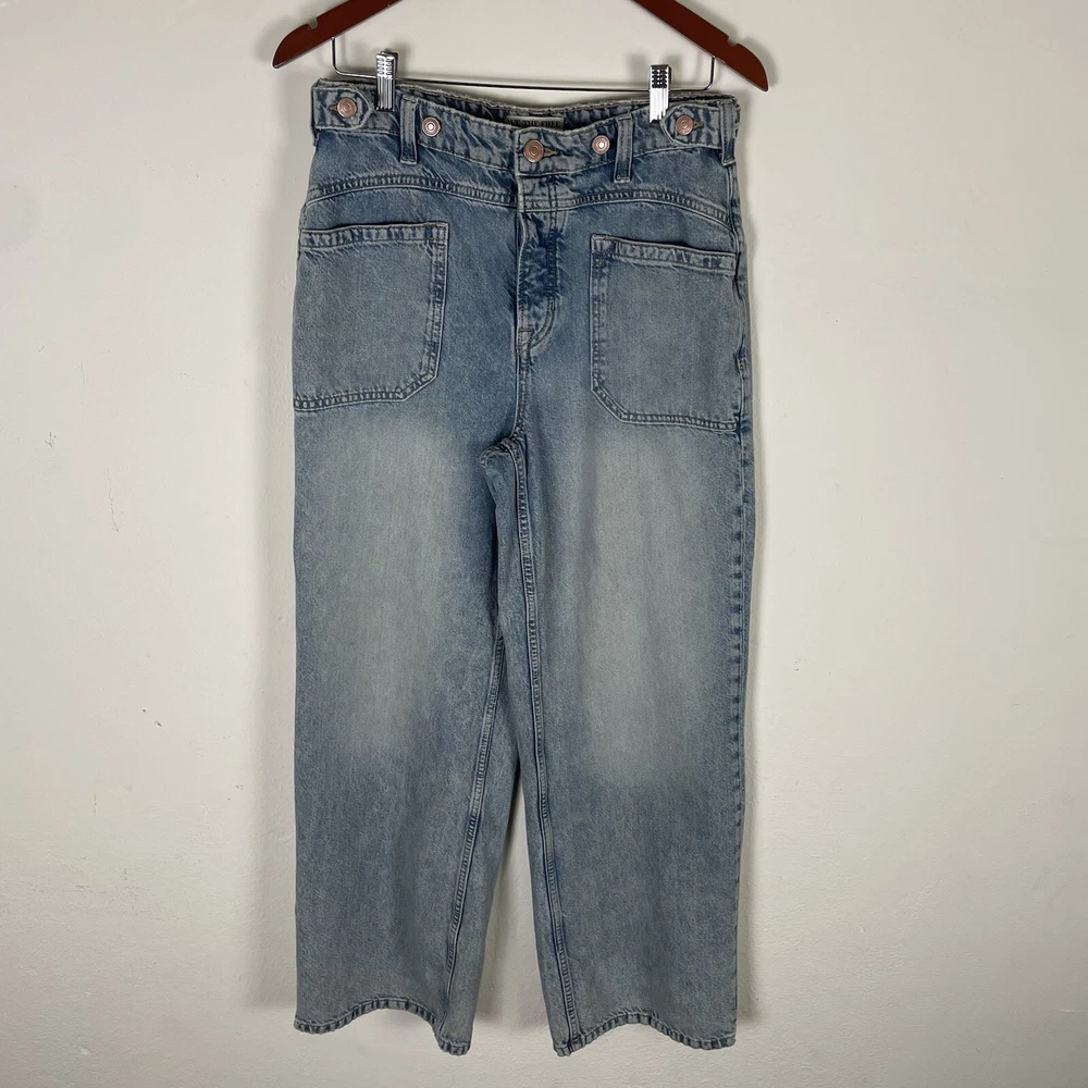 Free People We The Free Women’s Palmer Cuffed Jeans in La La Land Size 28 OB1824199 Button Fly Festival Bohemian Hippie Baggy Relaxed Fit Adjustable Oversized