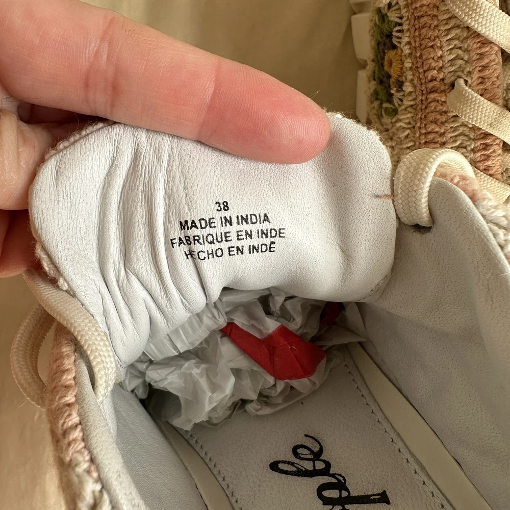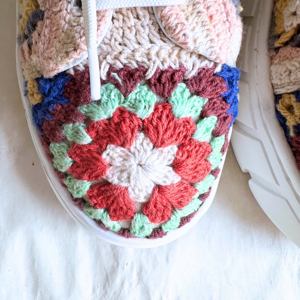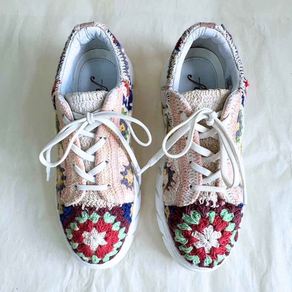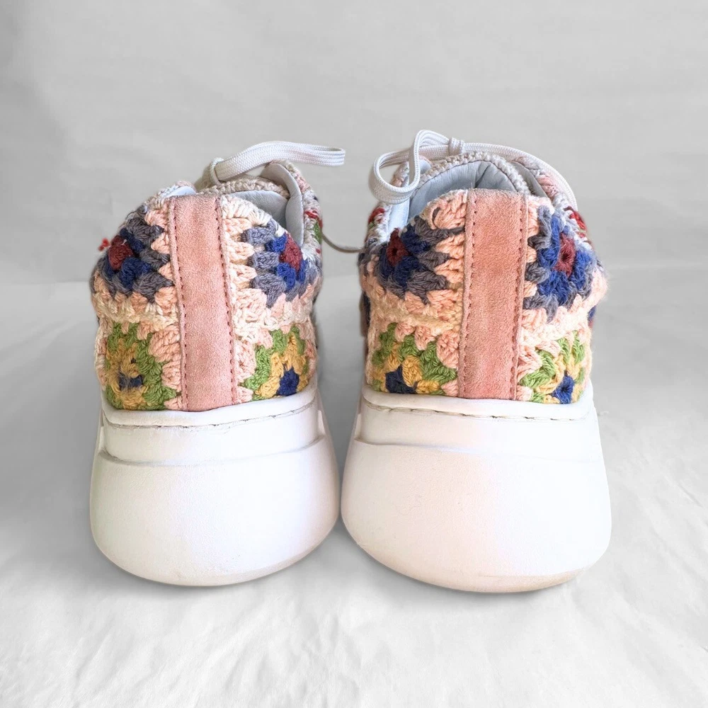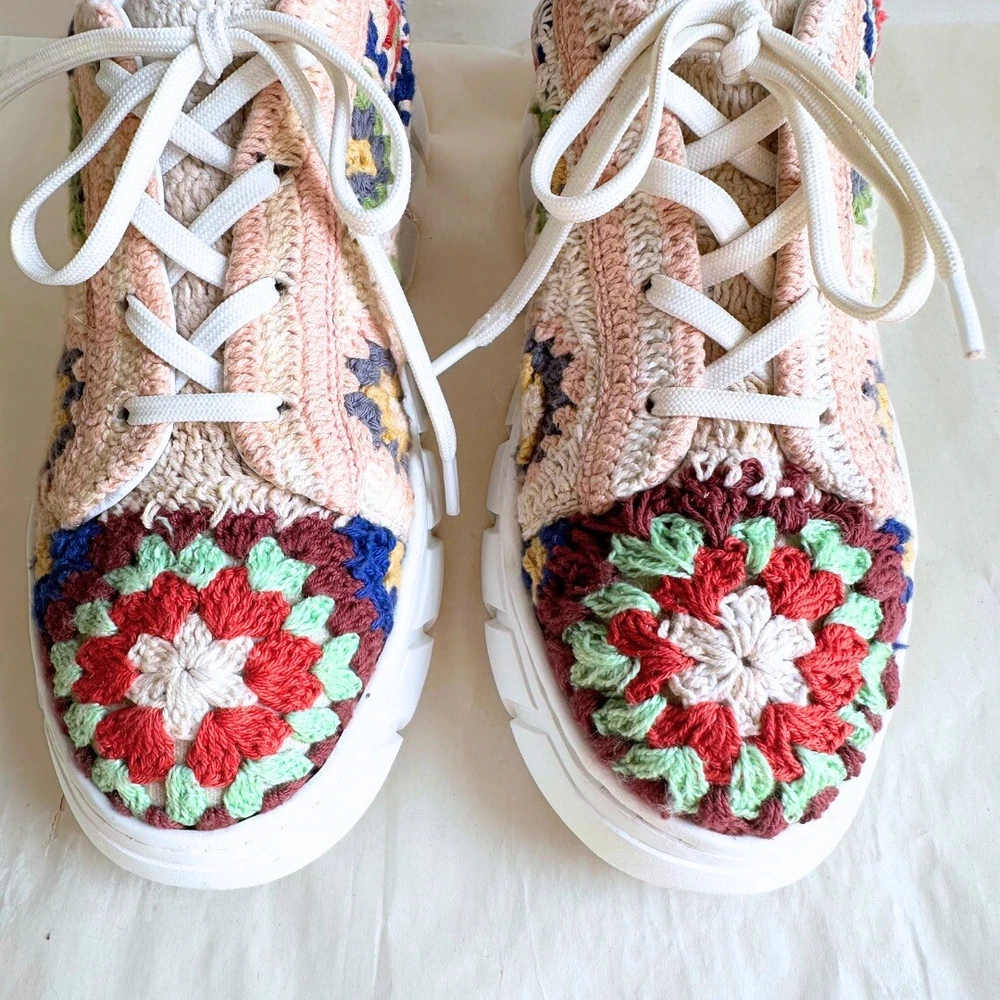 Free People Women size 7.5 Colorful Patchwork Crochet Shoe Catch Me If You Can Sneaker / tennis shoe Hippie Boho EU 38 platform / flats crocheted granny square shoes CONDITION: pattern is a little loser on one toe that the other. tags: fun festival festive happy birthday bohemian grannycore multicolor 1970's Y2K comfortable platform height: 1 3/4" widest part of the sole (ball of the foot): 4 1/4" length of sole from toe to heel: 11 1/4" 📦Packaged with care 📬 I will ship it out within 2 business days 🙂Smoke free home ♥️Offers welcome.