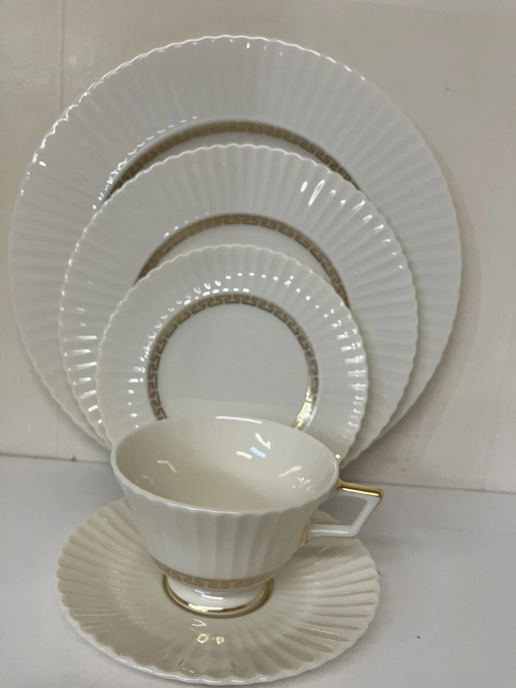 A very nice Lenox Cretan Fine China 5 Piece Place Setting in excellent condition, only slight use no chips cracks or crazing. Dinner plate is 10 7/8" Salad plate is 8 1/2" and Bread & Butter plate is 6 3/8". Free Shipping!
