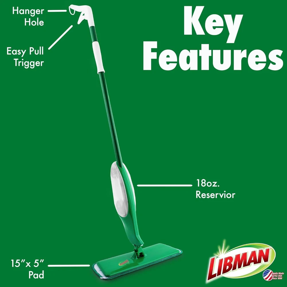 NO BUCKET: No batteries needed with the easy-to-use hand pump attached to the strong, durable handle. No more need for a bucket or wringer. Clean all around your house, floors, walls, baseboards, etc 360 DEGREES: Reach tough spots and maximize floor coverage with the large head that swivels 360 degrees to easily clean along baseboard, under chairs and tables and around the toilet 24OZ RESERVOIR: The 24oz reservoir is perfect for holding water or your preferred cleaning solution, providing you with the flexibility to clean without any restrictions 3 MICROFIBER PADS: Included in the kit are three microfiber pads, ensuring that you always have a fresh pad available to take on even the toughest cleaning jobs MACHINE WASHABLE: Simply hand or machine wash in cold water and hang to dry for best results. Please note that this pad should not be used with bleach, as it may damage the fabric. Product information Number of Items 1 Global Trade Identification Number 00071736013602 UPC 071736013602 Product Dimensions 56.75 x 6.5 x 4.25 inches Item Weight 3 pounds Country of Origin USA Item model number 1360