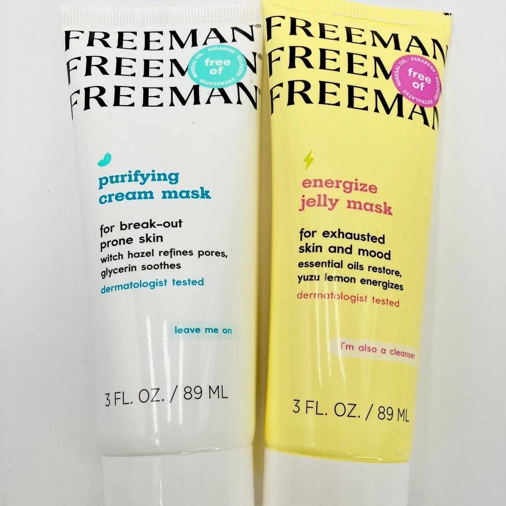 Treat yourself to this Freeman Beauty face mask duo, perfect for at-home spa days, self-care routines, or as a thoughtful gift! Includes: • 1 × Freeman Purifying Cream Mask (Sea Kelp & Probiotics) – 3 fl oz • 1 × Freeman Energize Jelly Mask (Ginseng + Citrus) – 3 fl oz Both are new, unused, and sealed. These deluxe travel-size tubes are ideal for trying out multiple masks without the full-size commitment. 💆♀️ Great for: • Skin detox & clarity • Boosting hydration and glow • Gifting or stocking up your skincare shelf Condition: New. Sealed tubes, no damage or leaks. Stored in a smoke-free, climate-controlled home. Ships quickly and safely!