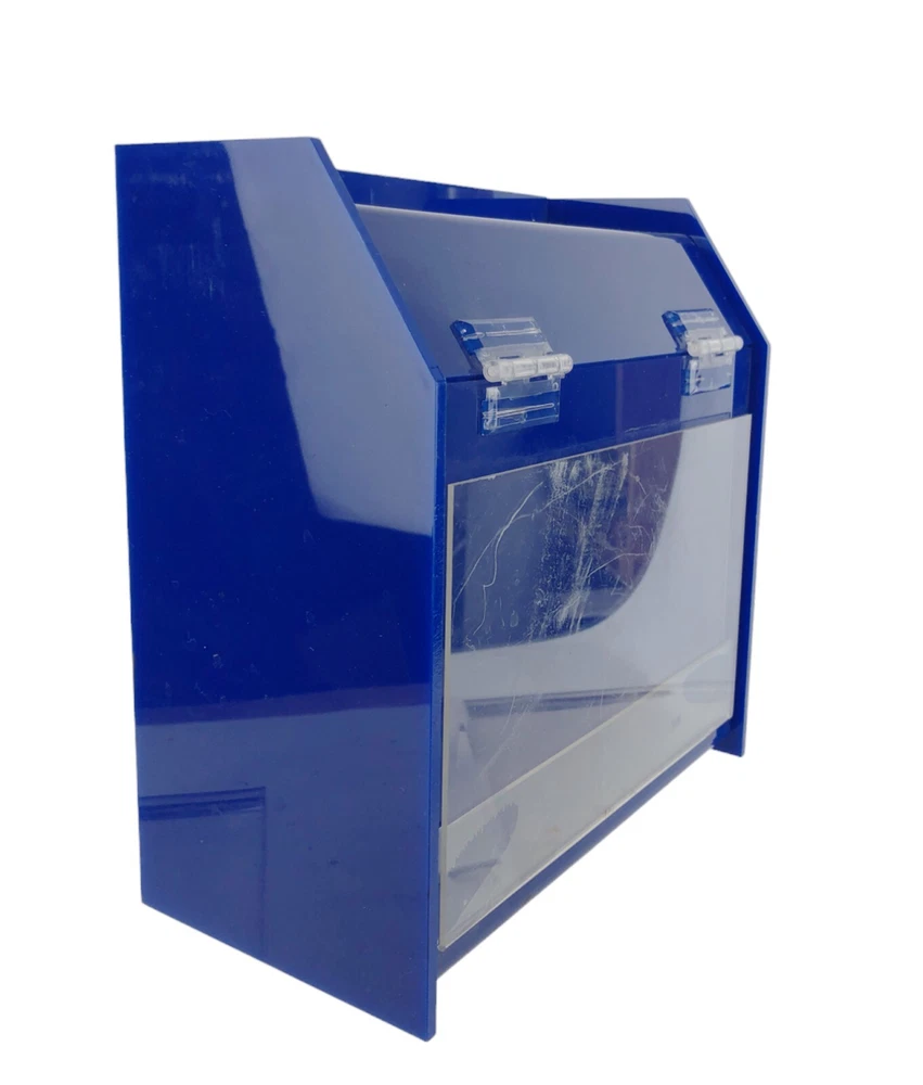 Freestand / Wall Mount Ballot Box w/Entry Form Pocket Blue Plastic 11 x 11 x 5"