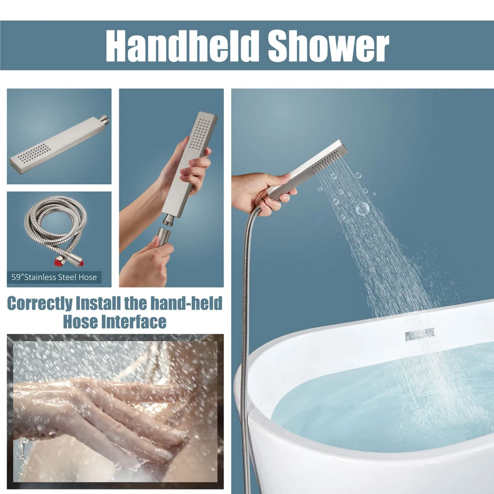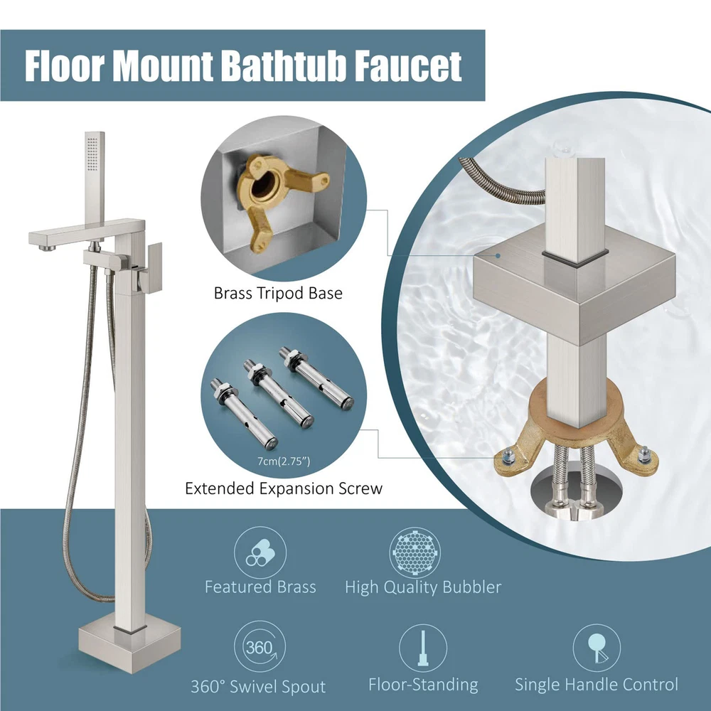 Store category Sign Up Now ! You may also like Product Description Bullet Points: Wonderful Design: Built to last, this freestanding bathtub faucet boasts chrome plated durability, resisting fingerprints and water stains with ease. Its solid brass and stainless steel construction further ensures longevity Smooth to Operate: Experience the convenience of easily adjusting water temperature and waterflow rate with our freestanding bathtub faucet's single-handle design and diverter knob. Change between tub spray and hand shower with ease: all thanks to our multi-functional operate design Fashionable Upgrade: Modern fashion appearance, bringing fashion updates to the bathroom; suitable for modern bathroom decoration with smooth lines and curves Convenient Installation: This faucet is easy to install, contains all installation hardware, and provides detailed installation instructions, requiring no additional accessories Versatile Cleaning: Our freestanding bathtub faucet provides a dynamic high-pressure rinse experience with a flexible stainless steel hose and a convenient handheld shower for maximum cleaning efficiency Experience convenient and stylish bathing with our freestanding tub faucets. Our multi-functional operate design allows for easy adjustment while ensuring durability. Bringing fashion updates to the bathroom, our faucet comes with a hose and handheld shower. Complete with detailed installation instructions for easy setup. Specification: Color: Chrome plated Material Brass + Stainless Steel Finish Type: Electroplated Bathtub Filling Function: 360-degree swivel spout, 59.06-inch shower hose Waterflow rate: Maximum 6 GPM (tub spout); 2.5 GPM (hand shower) Packing List: 1*main faucet body 1*straight tube 1*hand shower 1*shower hose 2*water supply hose 1*Cover 1*Installation accessories 1*Instruction manual Notes: 1. Due to different lighting and screen settings, the item color may be slightly different from the picture. 2. Due to different manual measurements, please allow a 1-2cm difference in size. Payment Delivery details Terms of sales About us Feedback & DSRs Payment Before you palce an order, please kindly make sure that you have a paypal account. We accept PAYPAL payment only. Payment should be completed within 2 days after auction closed, or unpaid dispute will be filed for an closing auction. An unpaid case will be filled after 4 days. Delivery details We ship to your eBay address. Each package will be shipped to US by UPS Regular Parcel with tracking number. Please check your shipping address carefully before checkout, it can't be changed if order completed. All items will be shipped within 1-2 business day upon receipt of payment.Orders placed on weekend will be shipped within 3 days. If you do not receive your item in 7-10 business days.please contact us immediately for further assistance. We will be responsible for any damages or losses incurred in the shipping process. About us We maintain high standards of excellence FIVE STAR and strive for 100% customer satisfaction! Positive Feedback is very important to us. We hope that you contact us immediately Before you give us neutral or negative feedback, so that we can satisfactorily address your concerns. We promise to offer the lowest price and high quality produce. Our working time: From Monday to Friday(9:30 am to 18:00pm), we don't working on holidays ,hope you can understand and know that , thank you. Please always talk to us via ebay Message. We appreciate your business and look forward to growing our e-Bay sales with satisfied customers. Feedback Contact us If you have any questions, please feel free to contact with us by ebay Message during our business hours ( 9:30a.m. to 5:30 p.m.), or email us through eBay, we will try our best to help you to resolve it. For any presale or after-sale questions,please do feel free to email us! Due to the time difference, each email will be replied within 1 working day,and weekend will be delayed a bit. Feedback