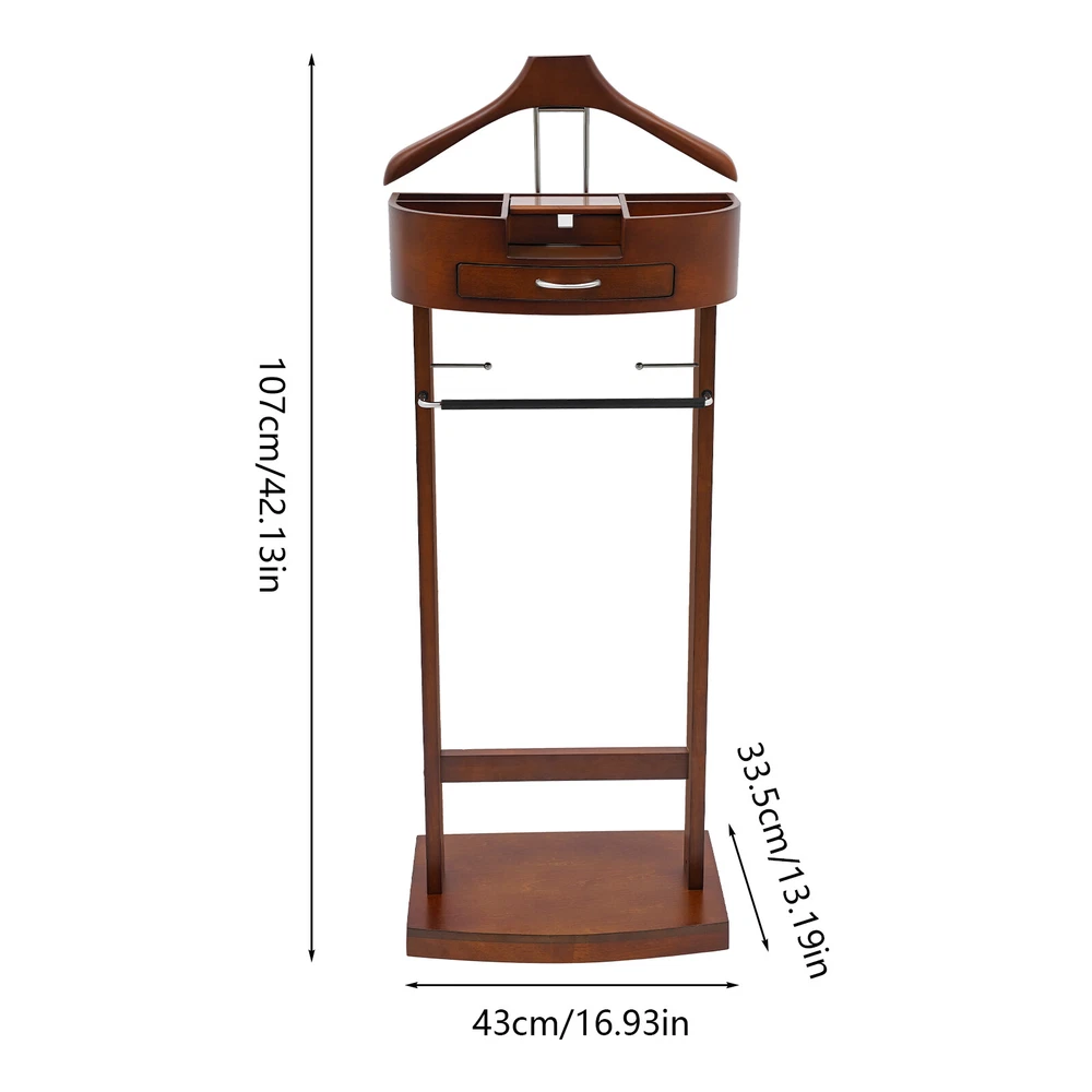 Package Included 1* Suit Rack 1* English Instruction Other Accessories for Assembly Wood Suit Rack, Freestanding Clothing Valet Stand, Valet Stand Welcome to our store^-^ Description Are you still struggling with the clutter of clothing organization? Our suit rack can solve this problem well. It is made of high-quality materials and fine craftsmanship and is a home storage boutique that combines practical functionality and artistic beauty. It is not only a suit rack but also a bright landscape in your home space, providing an elegant and practical habitat for your clothes, hats, scarves, and bags, and making your home more neat and orderly! Key Features Premium Materials: It is made of high-quality baked paint birch wood and electroplated iron bronze, with good anti-corrosion and wear-resistant capabilities, sturdy and durable, and not easy to deform. High Load-bearing Capacity: The high-quality material, thickened base, and stable structure allow it to hold up to 22.05 lbs, meeting the daily clothing hanging needs. Saving Space: It can save space because of the full utilization of vertical space and the small footprint( 16.93*13.19in ) of the base. Storage Assistant: The top multi-compartment tray and a drawer help to sort and store personal items such as wallets, watches, keys, and mobile phones. The front trouser holder with rubber wrapping prevents trousers from slipping off, and it also comes with a wide base and two tie holders for your shoes, ties, and belts. In addition, there is a wooden contoured coat rack on top for coats, suits, jackets and shirts. Aesthetic Appearance: The smooth lines, vintage brown, and natural textures make it well integrated into various styles of home decor, enhancing the overall texture and style of the home. Simple Installation : You can easily install it without too much effort and time because of its simple screwed connections and a detailed installation illustration . Easy to Clean: It has a smooth surface and an open structure, so you only need to wipe the dust or residue with a towel. Ideal Gift: With good performance and a modern appearance, it can be used as an ideal housewarming gift for parents, friends, and lovers so that they can also have a good clothing organization assistant. Good Customer Service: We aim to provide quality products and services. If you have problems, please feel free to contact us. We will reply and solve the problem for you as soon as possible. Details Convenient Handle: The arc-shaped handle makes it easy for you to open the drawer. Practical Compartment: A compartment with a flip cover and hole design can be used to hide the charging cable for charging mobile phones and other electronic products. Rounded Edge: The edges of the product are designed with rounded corners , so it will not hurt the clothes and your hands. Application It is used in bedrooms, living rooms, hallways, foyers, offices, and small apartments to hang items such as hats, scarves, bags, and clothes. Specification Color: Brown Style: Modern Material: Birch, Iron Bronze, Rubber Process: Electroplating, Baking Paint Load Capacity: 10kg/22.05 lbs Assembly Required: Yes Mounting Type: Free Standing Product Size: 43*33.5*107cm/16.93*13.19*42.13in Package Size: 100*35.5*13cm/39.37*13.98*5.12in Gross Weight: 7.28kg/16.05 lbs Net Weight: 7kg/15.43 lbs Package Included 1* Suit Rack 1* English Instruction Other Accessories for Assembly Notes Please note that items such as suits and trousers are not included in this product. Please allow the slight color difference caused by the shooting light and 1-3 cm error due to manual measurement, and make sure you do not mind before ordering. Payment Delivery details Terms of sales About us Contact us Payment We accept ebay payment 。 Fees such as import duties, taxes are not included in the item price or shipping costs. These charges are the buyer's responsibility. Delivery details Shipping: 2-9 working days to: USA Terms of sales We maintain high standards of excellence and strive for hundred percent customer satisfaction. Feedback is very important to us. We hope that you contact us immediately before you give neutral or negative feedback, so that we can address your concerns. It is impossible to address issues if we do not know about them! About us Your satis faction is our ultimate goal. We work hard to earn your trust and future business. Our certified technicians have tested each item before shipping. The unit comes with 1 year limited warranty on all manufacturing defects. a) If you receive a defective item, you may return it or ask for a discount. Please contact us within 14 days after you receive the package. b) What you returned must be intact and in its original packaging as re? u. Customer is responsible for shipping costs of the returned item. c) We will cover the cost of shipping back t with the shipping rate indicated in the registration page. We will send you a new unit or refund the full payment you paid. Thank you. Contact us Business Hour Business Hour: Monday To Friday: 8:30 AM to 5:00 PM (Beijing China time) Due to time zones, our reply to your questions may not be immediately. But within above working time, we will reply your email within 24 hours. If it's non-workdays, please kindly be patient and wait till Monday. Please contact us with ebay message. Please feel free to contact us if you have any questions. Monday To Friday: 8:30 AM to 5:00 PM (Beijing China time) Due to time zones, our reply to your questions may not be immediately. But within above working time, we will reply your email within 24 hours. If it's non-workdays, please kindly be patient and wait till Monday. Please contact us with ebay message. Please feel free to contact us if you have any questions. Feature new Shop trending picks—fast shipping, trusted brands Brand Unbranded Item Height 16 Item Length 13 Item Width 42 Color Brown Style Modern Material Birch, Iron Bronze, Rubber