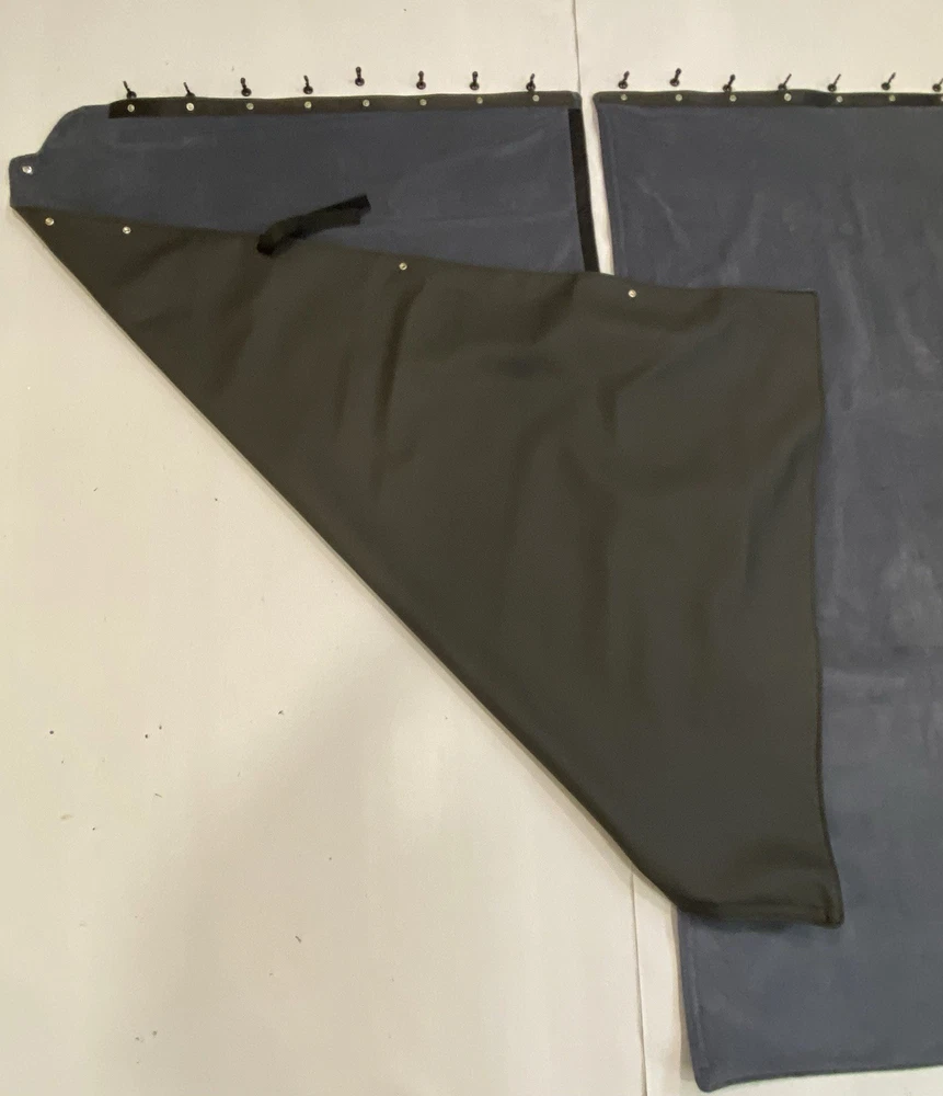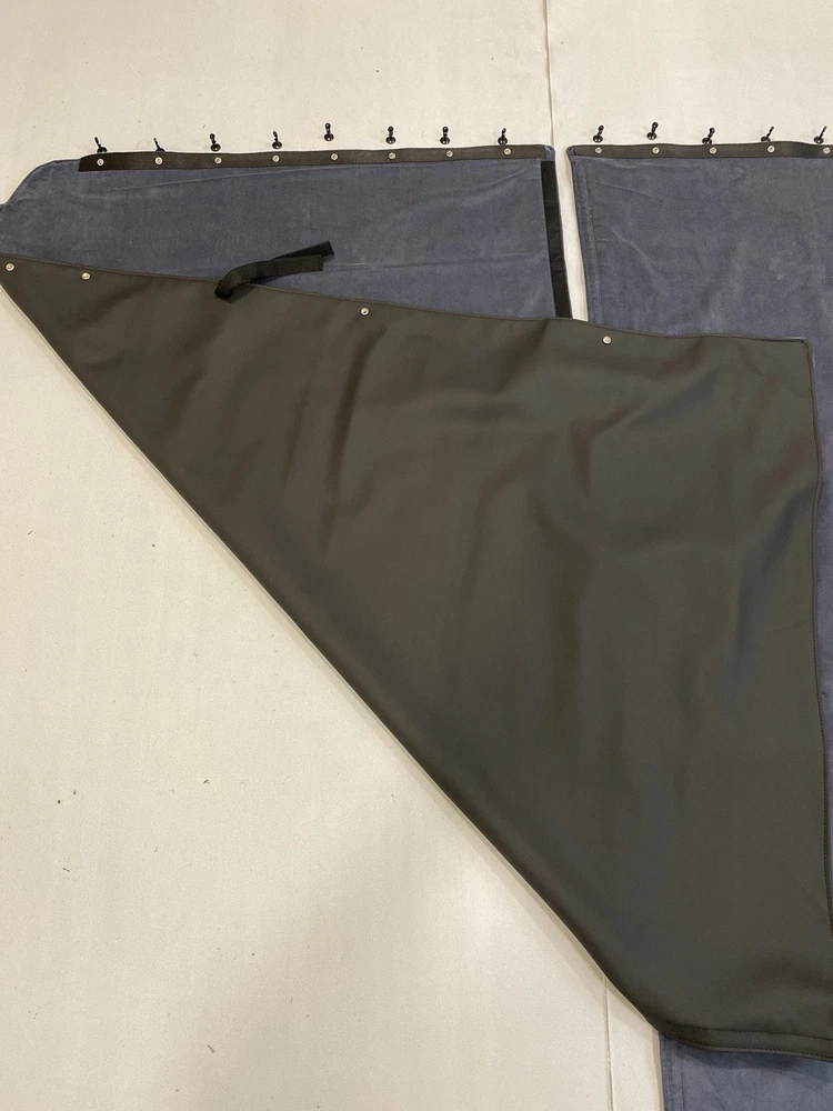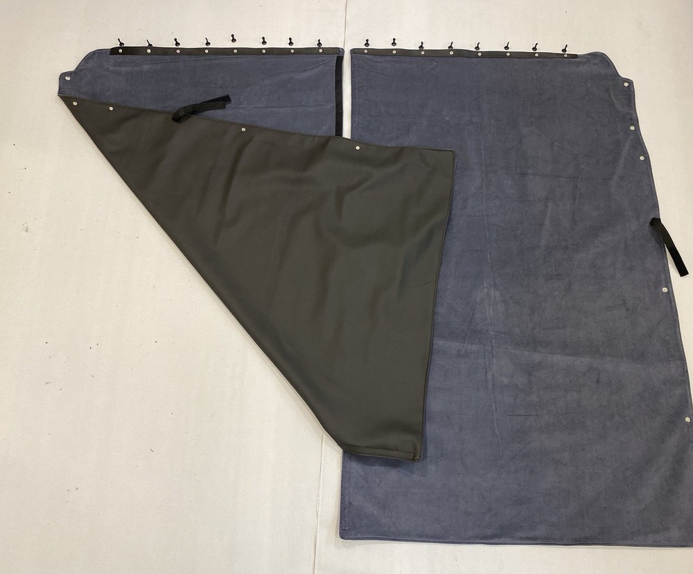 Freightliner Columbia / Century curtains. Left and right side. New. Faux leather black + grey velour. Clips included. Main curtain, Sleeper curtain, Privacy curtain. Made in USA FLAT TOP ROOF!!! Not MIDDLE ROOF! (See pictures please) If you need middle roof or high roof we have it. If you need another color or fabric let me know, we can do that.