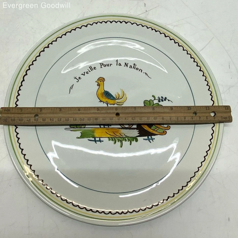 Collector Plate Gien France White/Yellow/Green Pottery French Revolution Bicenntial Plate Brand: Gien France Style: Collector Plate Type: French Revolution Bicenntial Plate Color: White/Yellow/Green Material: Pottery Condition: Good - shows some sign of wear Evergreen Goodwill helps people get jobs across Northwest Washington by offering high-quality free job training, education and job placement. We empower individuals to overcome barriers to working by providing comprehensive support and connecting them with life-changing job opportunities, ensuring they are career-ready and can support themselves and their families. ***Disclaimer*** All items were donated to Evergreen Goodwill of Northwest Washington with no history or provenance. The auction is for all items pictured. Items may need servicing and/or benefit from a cleaning upon arrival. Please see photos for additional details and feel free to ask questions. PAYMENTS Please note that your entire order will be canceled by eBay if the oldest item exceeds 7 days without payment. Once an order is canceled, we are unable to re-invoice and the item will be relisted. For a combined shipping invoice, please send us one request within 5 days of winning the first item to avoid cancelation of your entire order. Once a combined invoice has been sent, we are unable to add additional items to the invoice. SHIPPING Local pickup only available to items listed as Local Pickup at this time. Interntaional shipping is not available at this time. We offer combined shipping as long as items will ship safely together. Auctions must end within 5 days of each other to be eligible for combined shipping. Please hold off on payment until all auctions have ended then proceed to checkout. Please do not pay for any items individually if you wish to have them combined - they must be paid at the same time. Items listed for flat-rate shipping are not eligible for combined shipping. PO Box addresses will require USPS shipments as FedEx Ground will not deliver. If FedEx is selected we may need to invoice for additional shipping costs.
