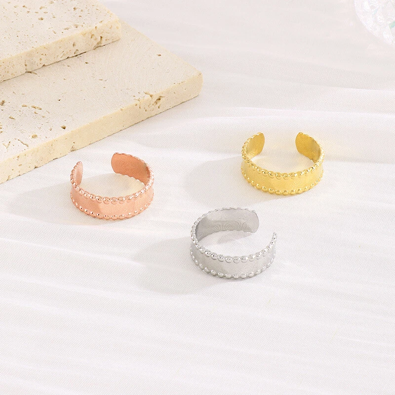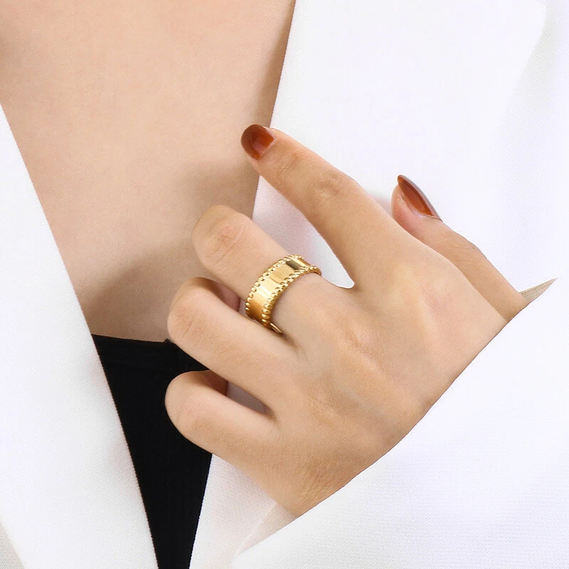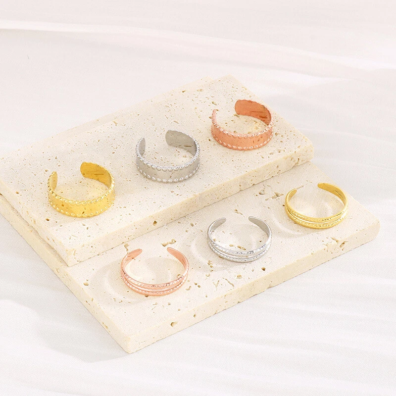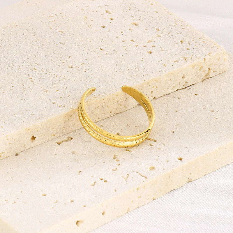 French new niche ring electroplated 18k gold titanium steel ring C open ring