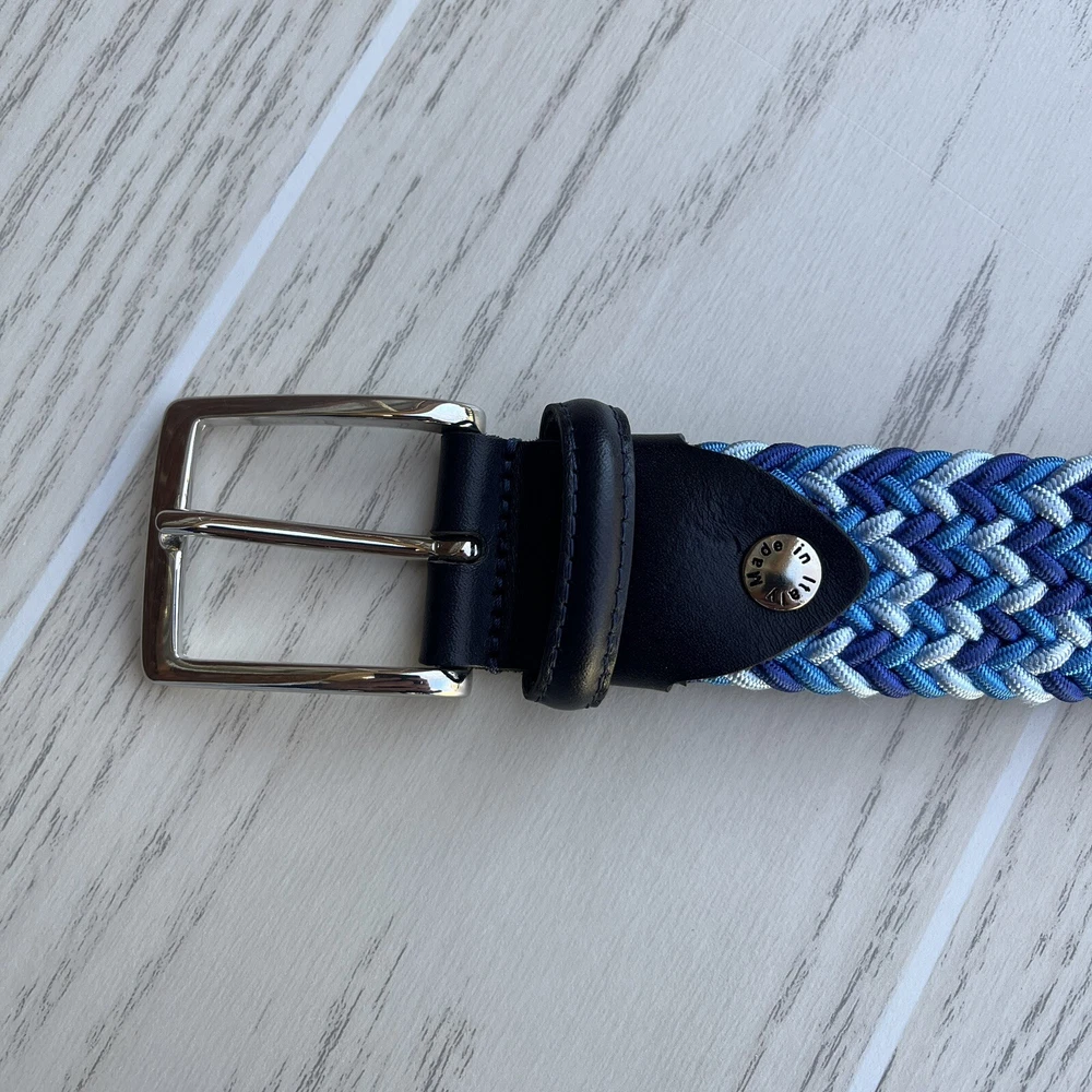 Fresco Golf Mixed Color Blue Belt Solid Brass Buckle Made In Italy