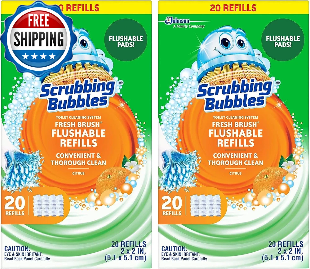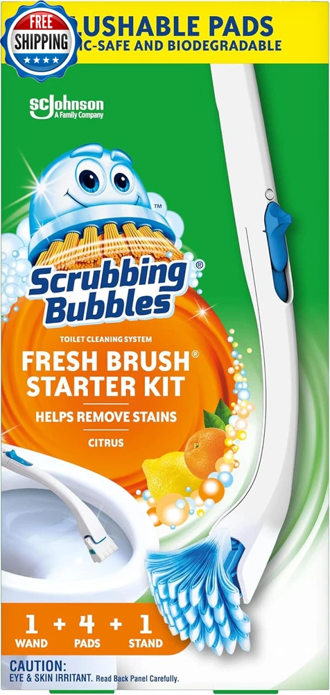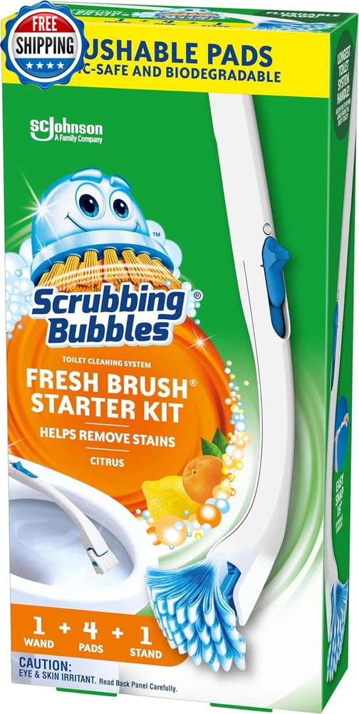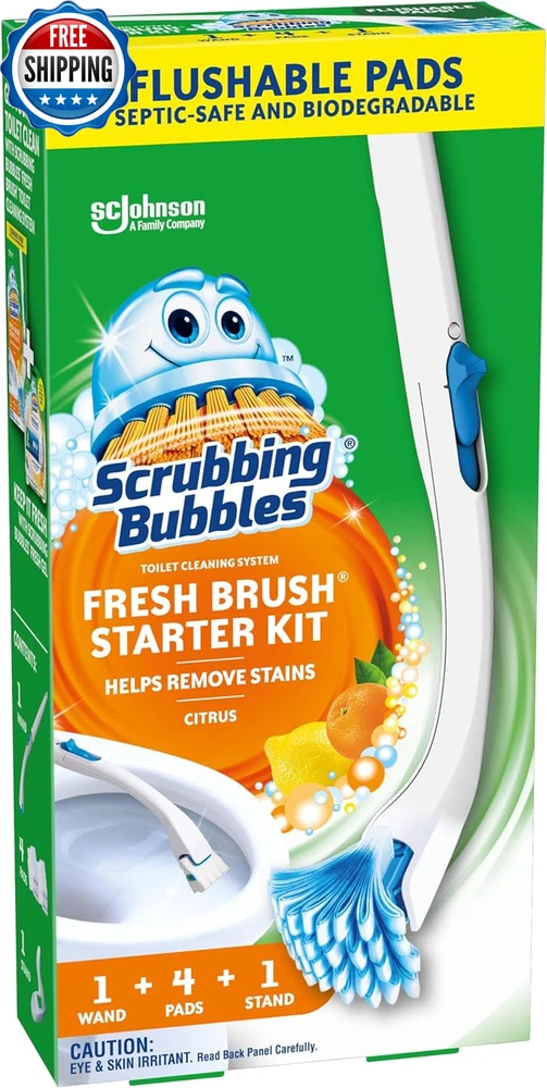 Toilet Bowl Brush and Holder with Cleaner Refill Pads, Fresh Brush Toilet Wand Starter Kit, Cleans Limescale & Fights Odors, Citrus Scent, 1 Wand + 4 Refills + 1 Stand What You'll Get: Add this toilet bowl cleaning kit to your cleaning supplies including a 19-inch toilet wand, 1 stand, and 4 flushable refill pads Toilet Bowl Cleaning System: exclusive technology helps remove stains for a convenient and thorough clean Flush Away the Mess: the septic safe, flushable pads allow for the dirty brush to be flushed into the toilet without touching it to keep it clean Suitable For All Toilets: the only toilet cleaning system that is flushable, not messy and easy to store Bathroom Cleaner: offering a variety of bathroom and toilet cleaning solutions for your home, check out the wide variety of products from Fresh Gel Toilet Stamps, Toilet Cleaning Tablets, Bathroom Disinfectants, Toilet Bowl Cleaners, and more! Scrubbing Bubbles Fresh Brush Starter Kit is a toilet cleaning system with flushable pads for a convenient clean. This complete, citrus-scented bathroom cleaner and hard water toilet stain remover kit includes a 19-inch toilet wand, 4 toilet brush pads and a stand to help you do away with all the unpleasantries of toilet cleaning. Each toilet pad attaches easily to the wand and can be released with one button, allowing you to thoroughly clean the bowl including under the rim. All you have to do is immerse the pad in the toilet water, scrub and flush the dirty pad when finished. Easy-peasy cleaning! Total bowl cleaning and a brush you can flush. That's cleaning reinvented. Use Scrubbing Bubbles Toilet Bowl Cleaner and Fresh Brush Starter Kit to get your toilet clean. And for an even deeper clean, use Scrubbing Bubbles Fresh Brush Heavy Duty Non-Flushable Pad Refills. Shipping Fast shipping is very important for us. Our standard US shipping service is FREE. Your order will be shipped within 2-3 business days upon full payment received. Your order will be delivered within 2-3 business days after the handling time. We only ship to the confirmed PayPal address. We reserve the right to cancel any order for any reason at any time. We are not responsible for undeliverable addresses. Returns and payment We offer a 30 days return policy from checkout winning date. We allow only PayPal as payment method FeedBack Your feedback very important to us, after you get your package and you are satisfied with our service please leave us positive feedback If you have any problem with your order / any questions please before leave any type of feedback For any questions, using eBay contact system Please visit our eBay store to check out other items for sale! Thank you for shopping at our store.
