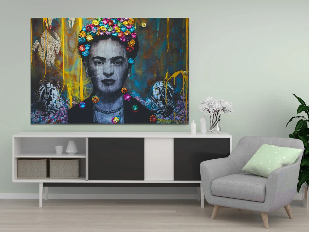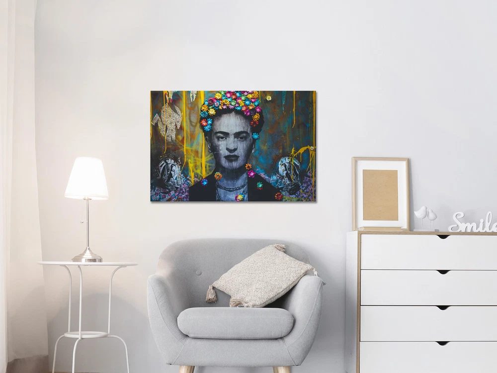 Solid Wood Frames (frame's thickness 0,7 inch or 1,8 mm) Production Polyester Canvas 260gsm Premium Semigloss Photo Paper 190gsm All items are packaged using strong poster tubes and packaging materials in order to mitigate any potential damage as the poster makes its journey Printed with high resolution fade resistant inks Printer: Epson stylus pro 7900 Frida Graffiti abstract graffiti