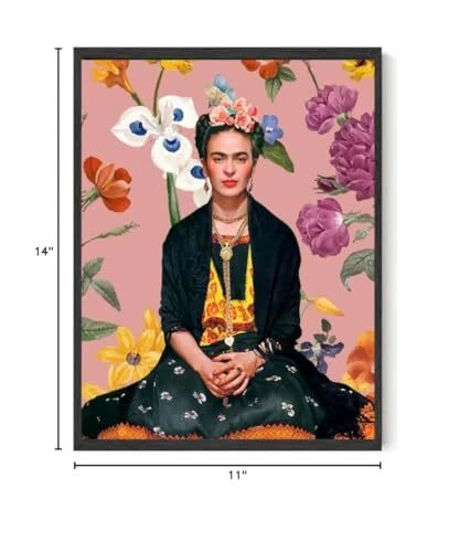 Frida Kahlo Portrait Art, Feminist Wall Art, Pink Vintage Women Art, Classic Frida Kahlo Home Decor, Floral Pattern, Latina Hispanic Wall Art, 11x14 Wall Art Poster (Unframed) 11x14 UNFRAMED Frida Kahlo print QUALITY PRINTS, READY TO FRAME- High definition and quality print paper with a luster matte finish and special UV coating for vivid colors and durability PERFECT FOR ANY ROOM - Perfect for bedroom, home, office, living room, dorm, wall decoration A GREAT GIFT - Perfect present or gift for any birthday, valentines day, holiday, housewarming, Christmas gift, friend or colleague Made in the USA. is a small minority owned business