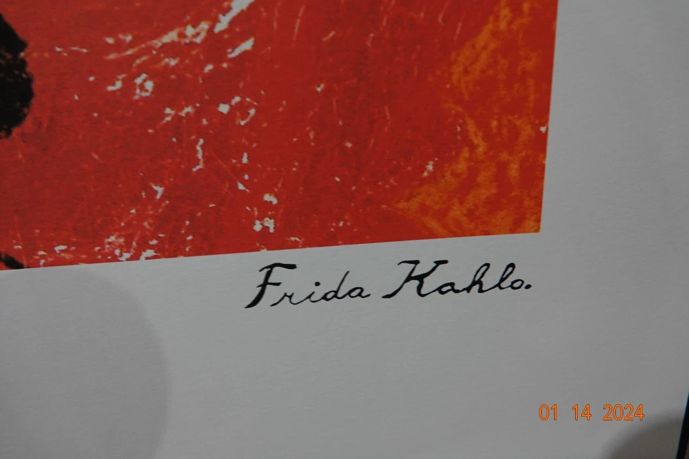 Verkauft wird eine Frida Kahlo Rep. Lithographie, l imitiert auf 250 hier die Nr. 81 Die Lithographie ist mit einem Lizenz Trockenstempel versehen, sowie signiert. Nummeriert wurde von Hand mit Bleistift. ( Die Nummern können variieren, Auflage stimmt). Größe 70 x 50 cm ! Jetzt und hier zum Schnapperpreis dabei sein! Es wird nur die Lithographie verkauft, nicht der abgebildete Rahmen. Natürlich zahlen sie nur einmal die Versandkosten (14,95 Euro - BRD) egal wie groß ihre Bestellung ist ! (Selbstverständlich flach & knicksicher verpackt, wir sind zertifiziert und versenden CO2 Neutral!! -GO GREEN- ) Ab 10 Items kaufen Sie bei uns weltweit Versandkostenfrei! LIFESTYLE FIEBER DAS SOLLTE SIE NICHT KALT LASSEN !! A small discription English: The lithographie is signed,strictly limited, embossing stamp, rare Motiv ! You buy commercially , so you take no Risk ! You pay shipping costs only once, no matter how big your order is. From 10 parts you buy from us worldwide free shipping! Please keep in mind that you are not buying the frame, you are buying the lithograph without the frame. LIFESTYLE FEVER,THAT SHOULDN'T LEAVE YOU COLD!