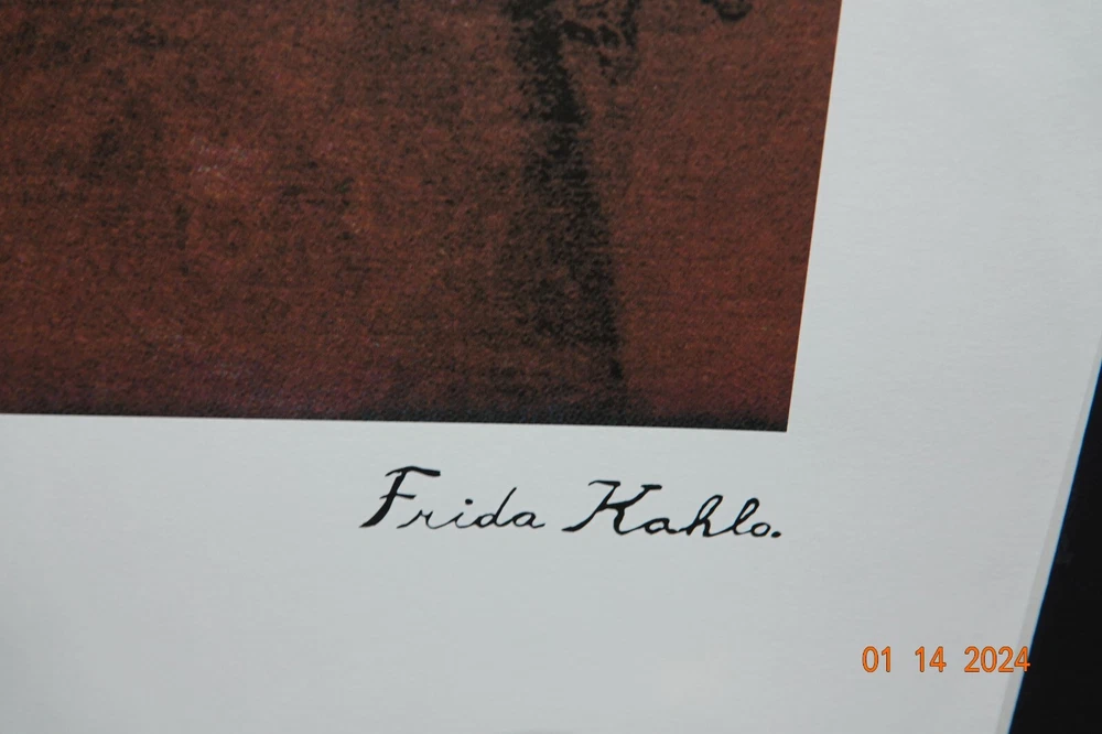 Verkauft wird eine Frida Kahlo Rep. Lithographie, l imitiert auf 250 hier die Nr. 160 Die Lithographie ist mit einem Lizenz Trockenstempel versehen, sowie signiert. Nummeriert wurde von Hand mit Bleistift. ( Die Nummern können variieren, Auflage stimmt). Größe 70 x 50 cm ! Jetzt und hier zum Schnapperpreis dabei sein! Es wird nur die Lithographie verkauft, nicht der abgebildete Rahmen. Natürlich zahlen sie nur einmal die Versandkosten (14,95 Euro - BRD) egal wie groß ihre Bestellung ist ! (Selbstverständlich flach & knicksicher verpackt, wir sind zertifiziert und versenden CO2 Neutral!! -GO GREEN- ) Ab 10 Items kaufen Sie bei uns weltweit Versandkostenfrei! LIFESTYLE FIEBER DAS SOLLTE SIE NICHT KALT LASSEN !! A small discription English: The lithographie is signed,strictly limited, embossing stamp, rare Motiv ! You buy commercially , so you take no Risk ! You pay shipping costs only once, no matter how big your order is. From 10 parts you buy from us worldwide free shipping! Please keep in mind that you are not buying the frame, you are buying the lithograph without the frame. LIFESTYLE FEVER,THAT SHOULDN'T LEAVE YOU COLD!