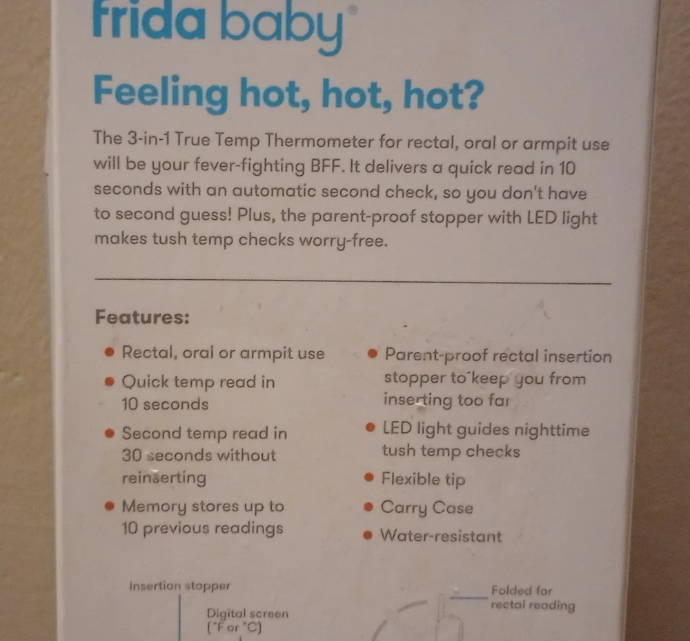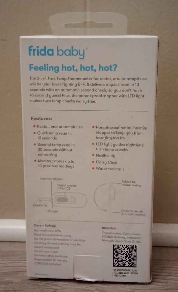 Frida baby 3-in-1 True Temp Thermometer Rectal, Oral, Armpit / 10 Second Predictive Quick Read + 30 Second Final Temperature Read / Comes With 1 Thermometer & 1 Carrying Case / New In Box! / Ships With USPS Ground Advantage!!