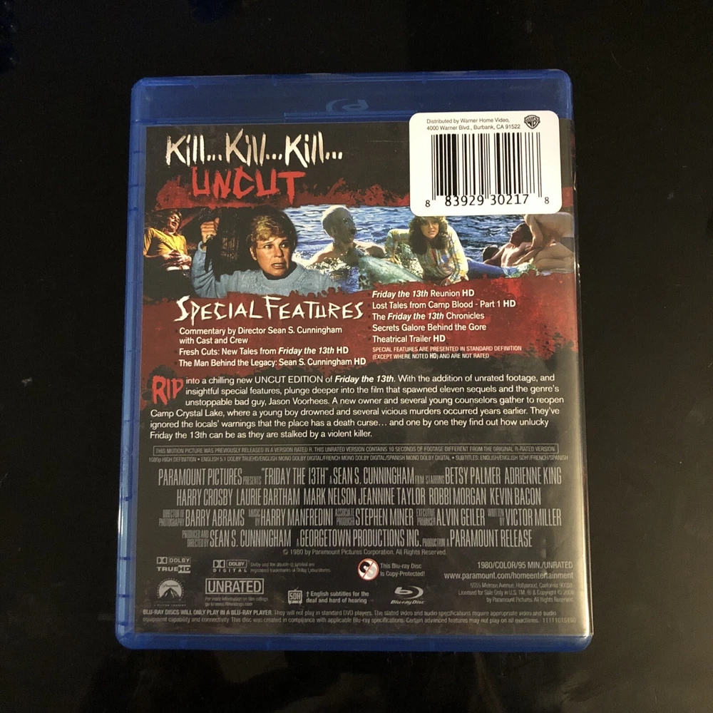 Here we have a very mint condition Friday the 13th on Blue Ray! No scratches,very clean and lightly used.