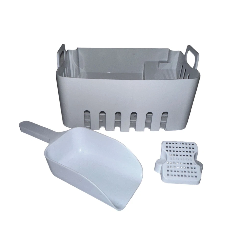 Features: • Brand: Frigidaire • Type: Ice Maker Replacement Parts • Style: Basket to Capture Ice, Scoop & Drain Cover • Line: EFIC120-SS-SC • Color: White • Material: Plastic • Condition: Great, Minor use, Some surface scrapes • ***THE ONLY PARTS INCLUDED ARE THE PIECES PICTURED*** • Made in Unknown Measurements are Approximate: Length of Basket: 7.25 in / 18 cm Depth: 5 in / 13 cm Height (with handles): 4 in / 10 cm Height (without handles): 3 in / 8 cm ***THIS PART IS DESIGNED TO ONLY FIT THE MODEL NUMBER LISTED*** Orders shipped within 1-2 business days. 1022249201