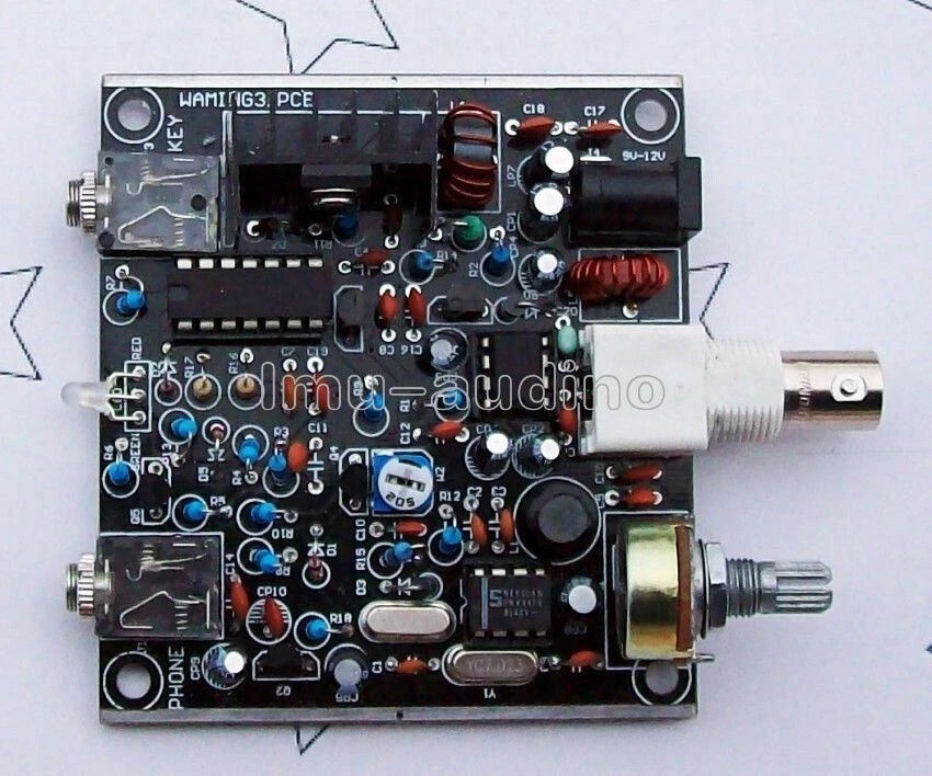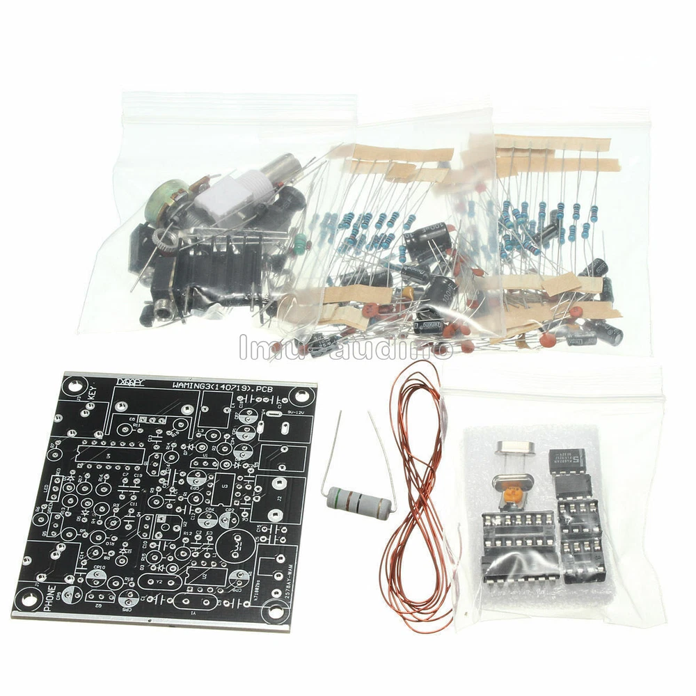 Note : it is diy kit , Need soldering by youself This is a very small volume of a simple 40 meter band micro-power amplitude telegraph transceiver, 9V square battery or external 9-12V DC power supply. Spread good time, and the nearby provinces hundreds of kilometers amateur radio communications. This machine was first introduced by domestic radio enthusiasts, but also it played a nice name "frogs". The frogs calling Kit 3.1 public version based combined with the actual usage Fixed several key issues, after several debugging before the formation of the current version. Key Indicators Power supply: 9V-12V (Recommended 12V linear regulated power supply) Antenna: 50 ohm, unbalanced Transmission power: 2W (9V Power), 3W (12V power) Frequency: transmitter local oscillator frequency: 7023 KHz; receive local oscillator frequency: about 7023-7026 KHz Operating mode: CW Use This machine is simple direct conversion transceiver interference, selectivity can be compared and the super heterodyne receiver, it is necessary to use not worse than the length of a half-wave dipole antenna, or communication is relatively poor. The selection disturbance is relatively small; spread the good opportunity for communication experiment, it is best to make an appointment with your friend’s communication. Communication distance of about 150-300 km more secure, to greater distance depends on the propagation environment and the operator's operating skills. If the broadcast interference is relatively large, use 5K GAIN potentiometer signal attenuation, emergent signal from the radio interference. Attenuation potentiometer is critical, carefully adjusted; you will receive an unexpected effect. In the dissemination of good times with of this machine FT80C goods shortwave radio with a signal on a distant contrast reception, this local effect is no difference between basic commodity machine, which makes unexpected. Recommendations for improvement 1N4001 replaced by appropriate varactor tube (recommended the 0P-100P), can increase the receive frequency range. Q1 9018 power between 0.8W ~ 1.2W 8050 power between 1.5W to 2W (select 8050 will make D882 In a critical state, need to be careful). Package Contents : Frog Sounds HAM Radio QRP diy Kit Telegraph CW Transceiver Receiver Radio Station V3 Contact us Return Policy Feedback Contact us For anything problem about product, price, shipping or order status, pleasecontact us via eBay message.Just contact us using the "Ask the seller a question" link on eBay. We expect positive feedback and 5 scores DSR from you. Return Policy We believe our items are so outstanding. We are convinced you will be happy with your Purchase. If you do not satisfy with our items. Please simply return to us within 30 Days in original condition. Just pay for the returned postage. Then we can issue full refund to you after the returned item arrived at our warehouse. Please include your eBay ID and item number with any email requests. Feedback * When you satisfied with our product and services please leave us positive feedback. * If you have got the package, please confirm "Delivery on time" For us. * If a problem occurs, contact us immediately with any email request. * Just contact us using the " Ask the seller a question" link on eBay. Your Satisfaction is our Priority. Our goal is to make all our customers as happy as possible while shopping with us.