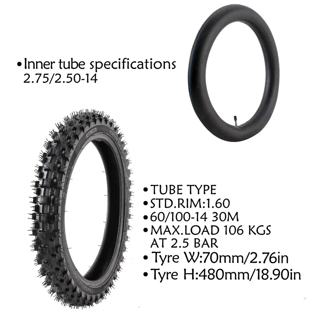 Front 60/100-14 Rear 80/100-12 Tire Tube 2.50-14 3.00-12 for Dirt Bike TTR110