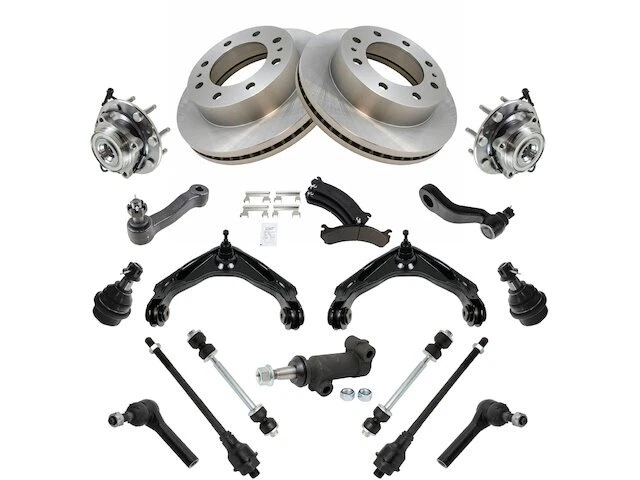 Front Brake Pad Rotor Wheel Hub Control Arm Kit fits H2 2003-2007 4WD 18KWHH Front Brake Pad Rotor Wheel Hub Control Arm Kit fits H2 2003-2007 4WD 18KWHH Position: Front Brand: TRQ Brake Pad Rotor Wheel Hub Control Arm Kit Condition: New Product Description Notes: 18 Piece Steering, Suspension, & Brake Kit -- 3 Groove Pitman Arm Features: Replacement Brake Kits Features & Benefits Product Specifications Quantity: 18 Piece Wheel Lug Count: 8 Lug Package Contents: (2) Front Sway Bar Links; (2) Front Outer Tie Rods; (2) Front Inner Tie Rods; (2) Front Lower Ball Joints; (2) Front Wheel Bearing & Hub Assemblies; (1) Pitman Arm; (1) Idler Arm; (2) Front Upper Control Arms with Ball Joints; (2) Front Brake Rotors; (1) Front Ceramic Brake Pad Set with Contact Point Grease & Hardware; (1) Idler Arm Bracket Assembly Detailed Applications Years Vehicle Sub Model 2003-2007 Hummer H2 4WD Warranty Coverage Policy 12 Month Warranty 30 Day Return Policy Return shipping paid by: Buyer Item must be returned within: 30 Days Refund will be given as: Money Back DO NOT SEND RETURNS BACK WITHOUT A VALID RMA NUMBER If you have an issue after receiving your part, please email us directly through eBay
