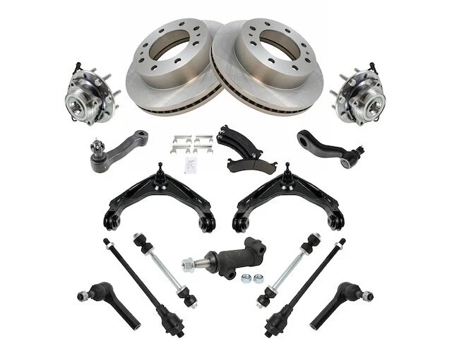 Front Brake Pad Rotor Wheel Hub Control Arm Kit fits Suburban 2500 16ZXYY Front Brake Pad Rotor Wheel Hub Control Arm Kit fits Suburban 2500 16ZXYY Position: Front Brand: TRQ Brake Pad Rotor Wheel Hub Control Arm Kit Condition: New Product Description Notes: 18 Piece Steering, Suspension, & Brake Kit -- 3 Groove Pitman Arm Features: Replacement Brake Kits Features & Benefits Product Specifications Quantity: 18 Piece Wheel Lug Count: 8 Lug Package Contents: (2) Front Sway Bar Links; (2) Front Outer Tie Rods; (2) Front Inner Tie Rods; (2) Front Lower Ball Joints; (2) Front Wheel Bearing & Hub Assemblies; (1) Pitman Arm; (1) Idler Arm; (2) Front Upper Control Arms with Ball Joints; (2) Front Brake Rotors; (1) Front Semi-Metallic Brake Pad Set with Contact Point Grease & Hardware; (1) Idler Arm Bracket Assembly Detailed Applications Years Vehicle Sub Model 2001-2006 Chevrolet Suburban 2500 4WD 2001-2006 Chevrolet Suburban 2500 RWD Warranty Coverage Policy 12 Month Warranty 30 Day Return Policy Return shipping paid by: Buyer Item must be returned within: 30 Days Refund will be given as: Money Back DO NOT SEND RETURNS BACK WITHOUT A VALID RMA NUMBER If you have an issue after receiving your part, please email us directly through eBay